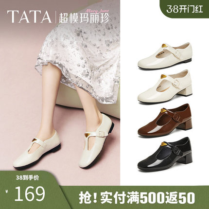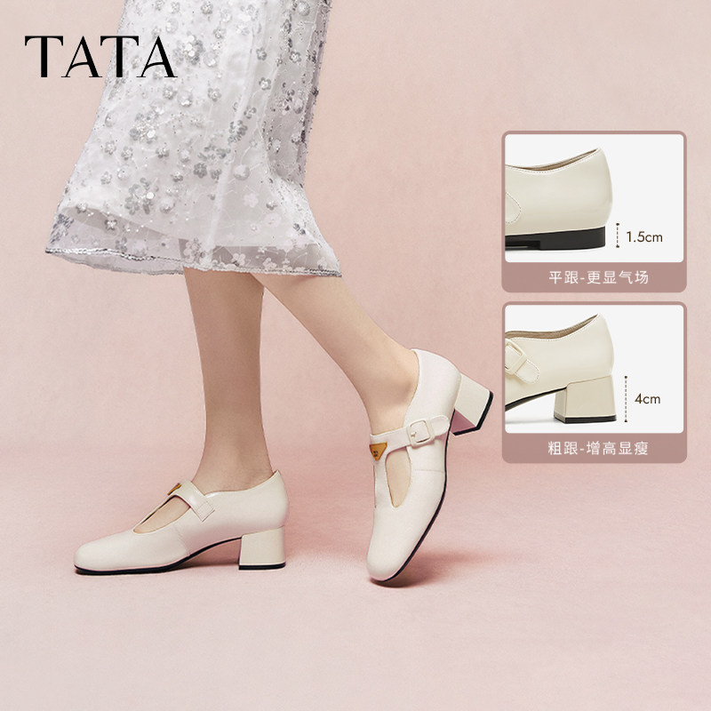 TATA他她玛丽珍鞋女鞋子复古真皮粗跟小皮鞋单鞋2025年7HF20AA5
