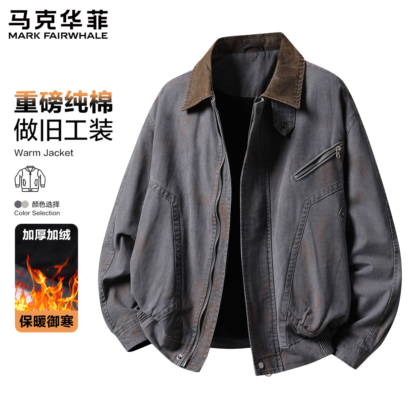 马克华菲2025秋冬纯棉巴恩风夹克男工装百搭上衣宽松加绒保暖外套