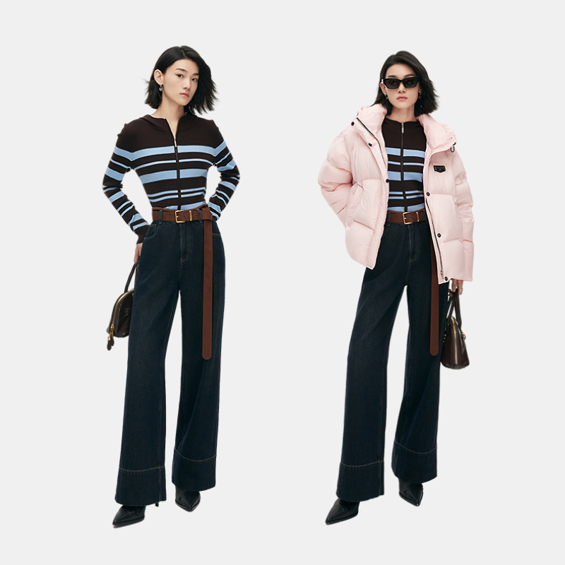 FF仿佛针织衫女2025秋季新款复古连帽条纹修身长袖毛衫针织上衣
