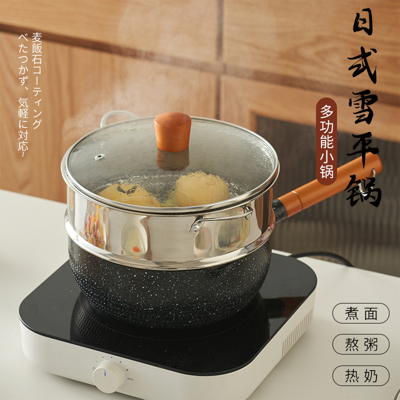 肆月日式雪平锅不粘锅小奶锅麦饭石电磁炉专用煮牛奶泡面家用汤锅