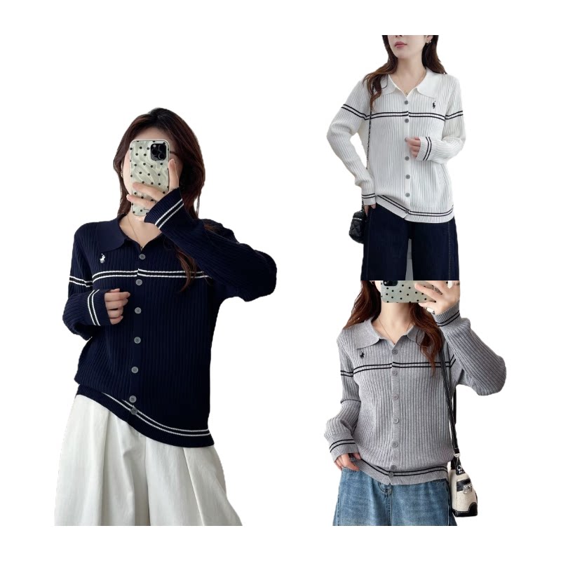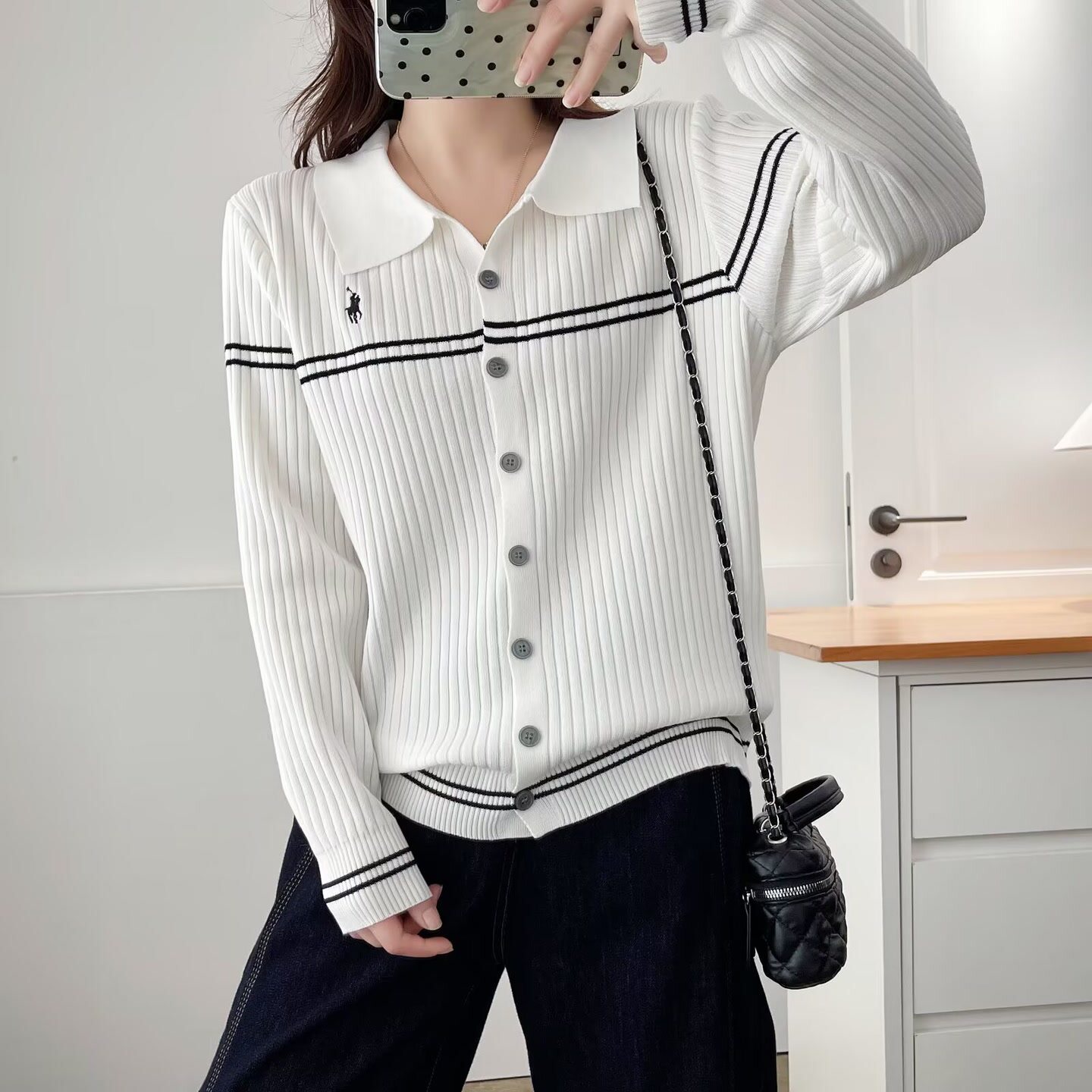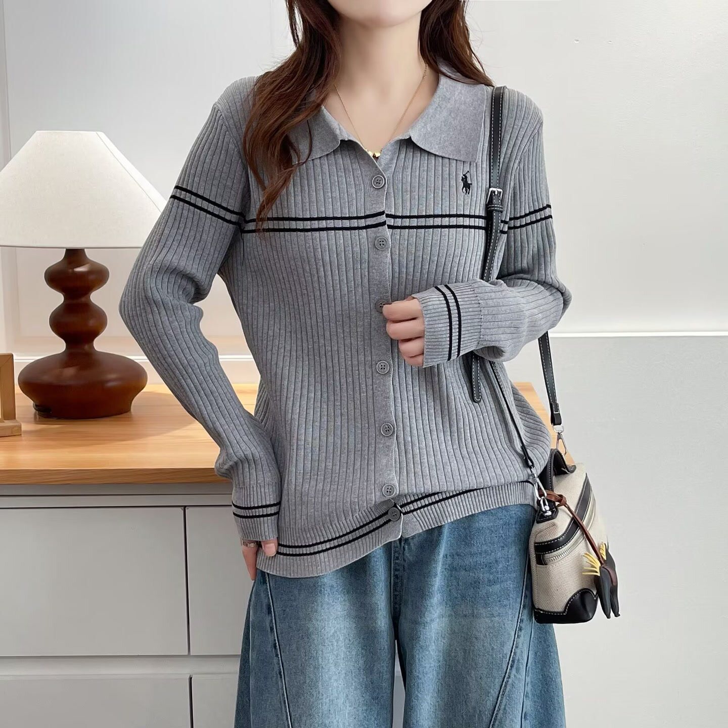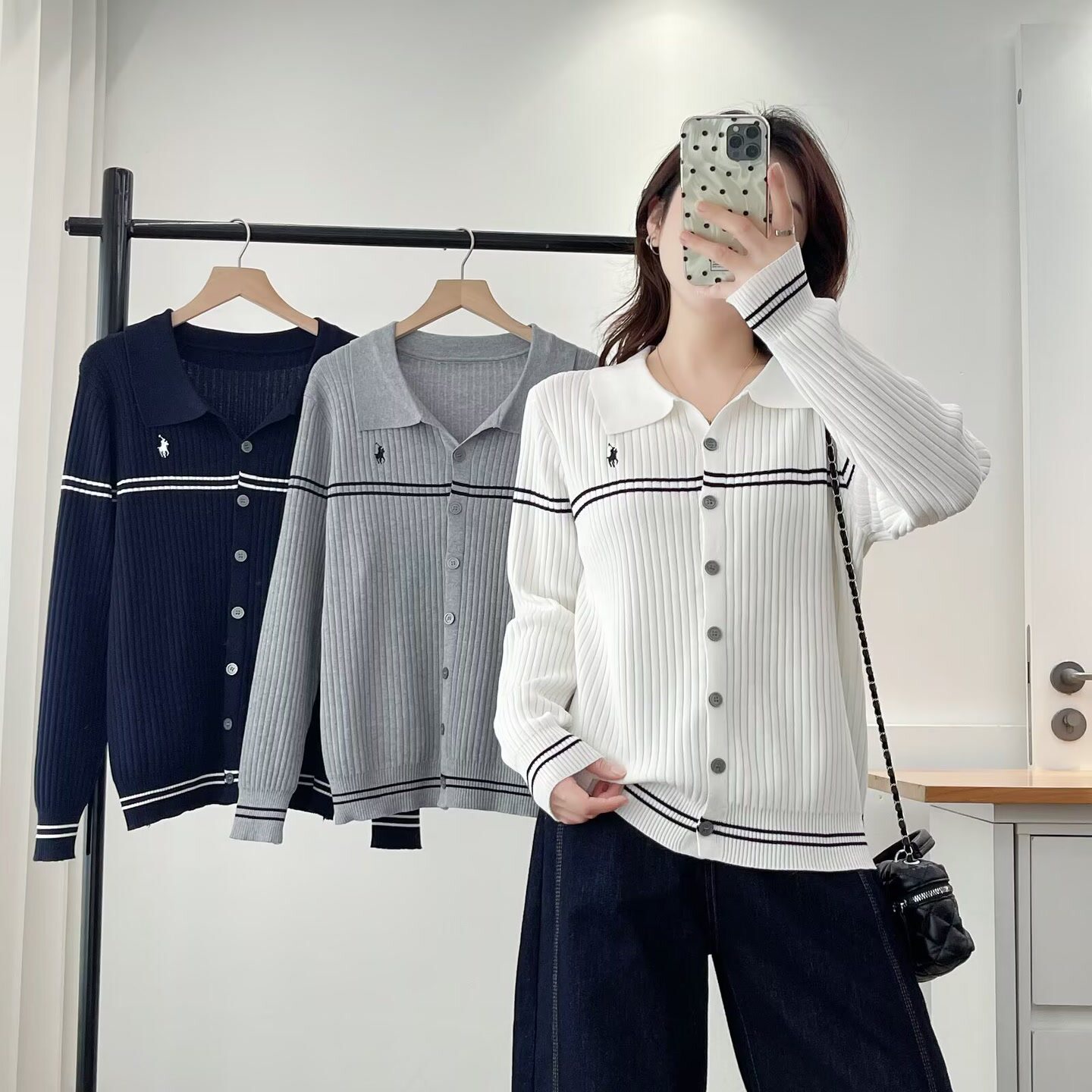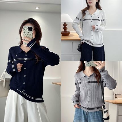大码女装遮肚子胖mm秋款韩系POLO领气质百搭显瘦长袖针织开衫1407