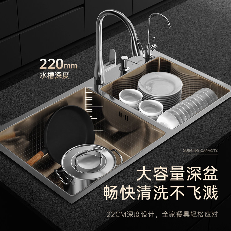 万和厨房水槽大双槽304不锈钢洗菜盆手工纳米加厚台下盆洗碗水池