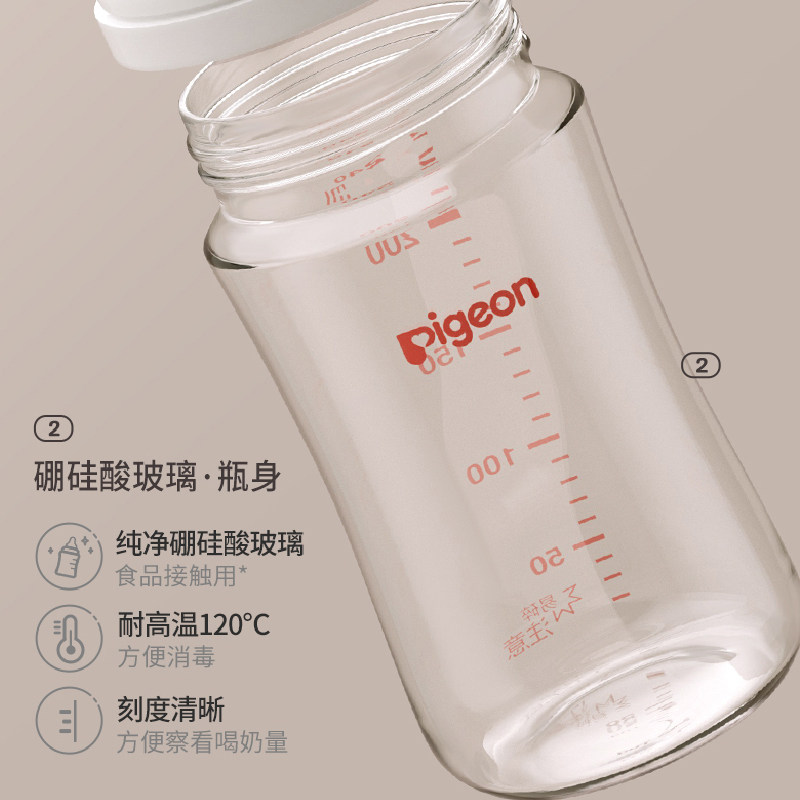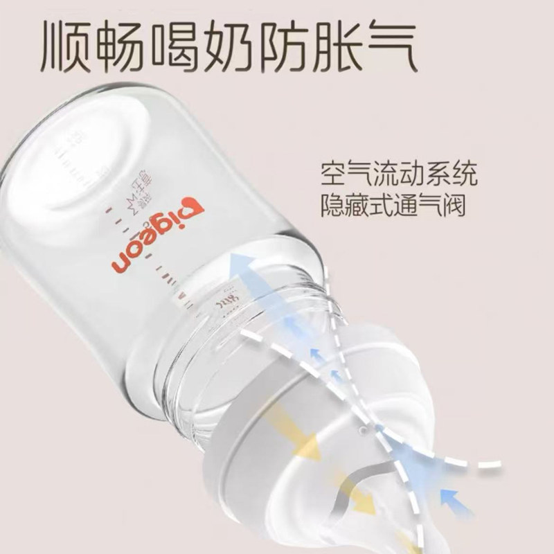 Pigeon贝亲新生儿宽口径玻璃奶瓶第3代自然实感玻璃奶瓶奶嘴