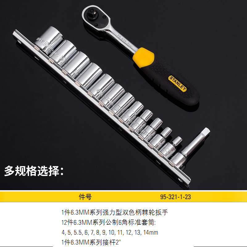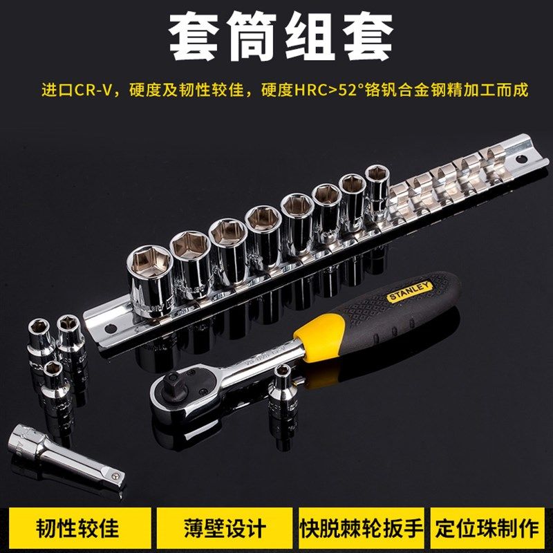 史丹利套筒组套小飞/中/大飞套装 棘轮套筒扳手组合6.3/10/12.5MM