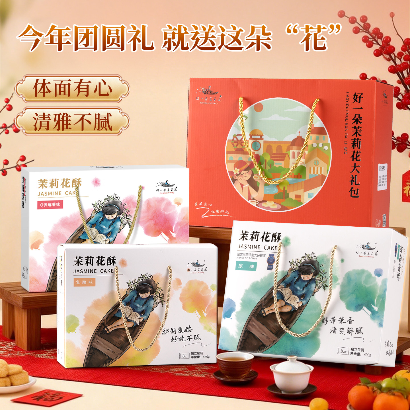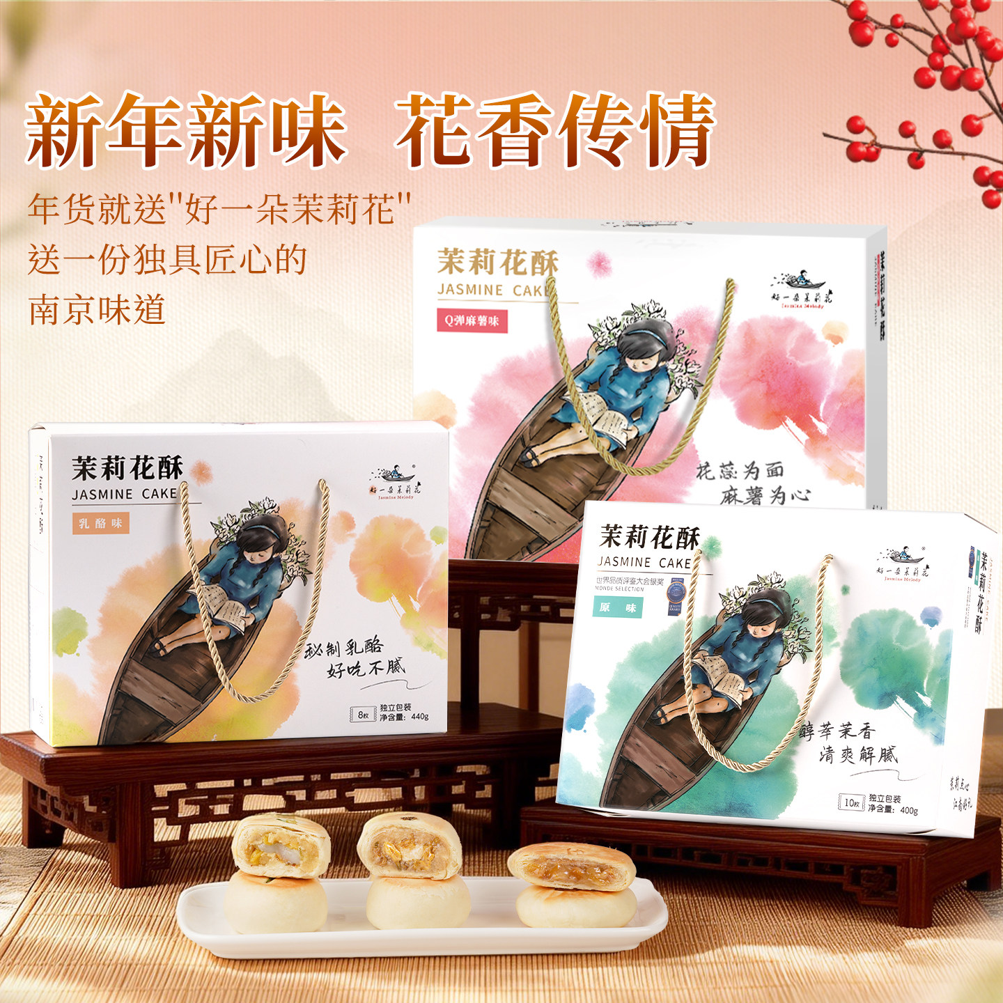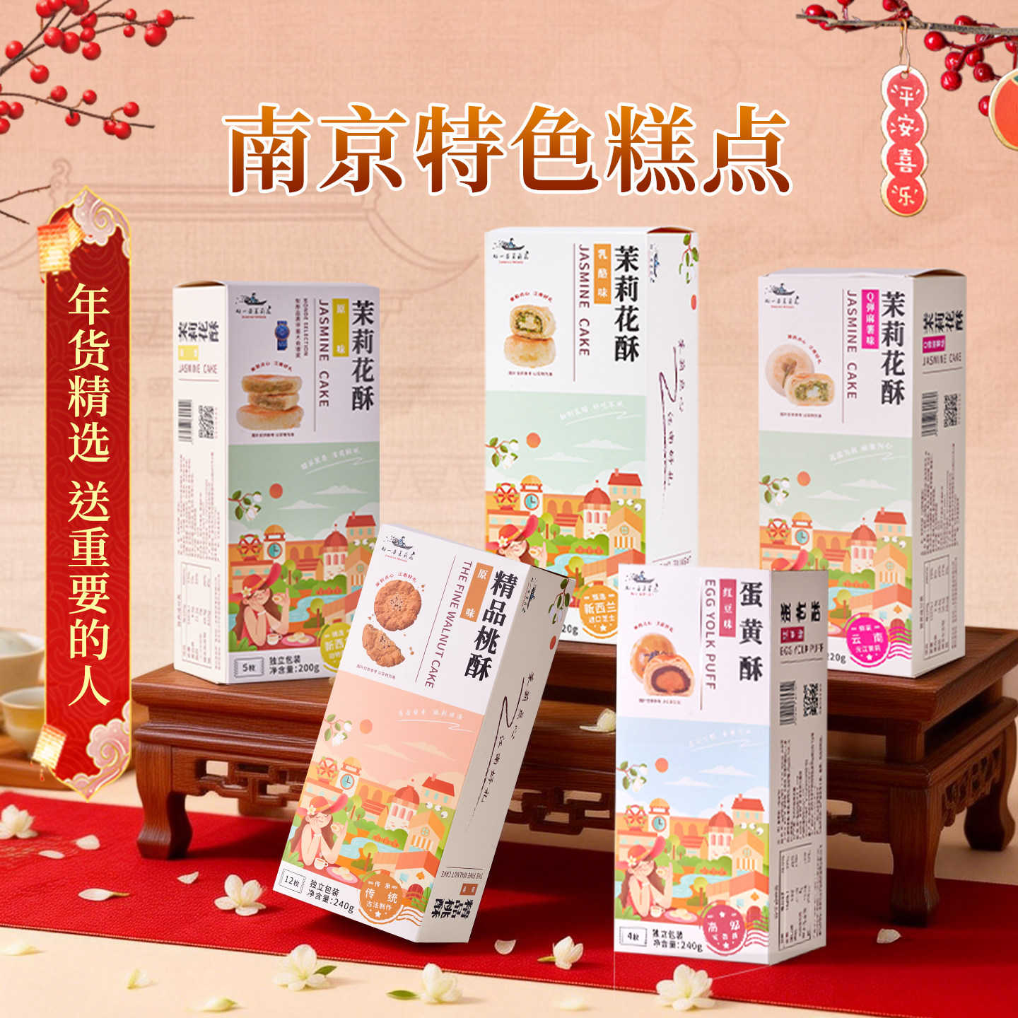 好一朵茉莉花南京特产鲜花饼桃酥蛋黄酥特色点心零食糕点礼盒伴手