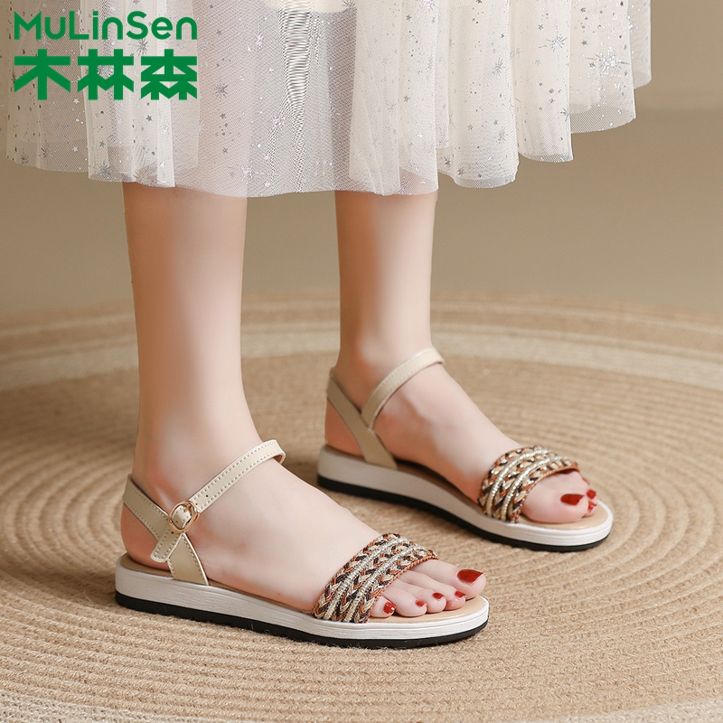 木林森女鞋2025新款夏季凉鞋女款平底鞋女士百搭不累脚外穿软底鞋