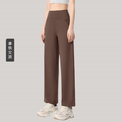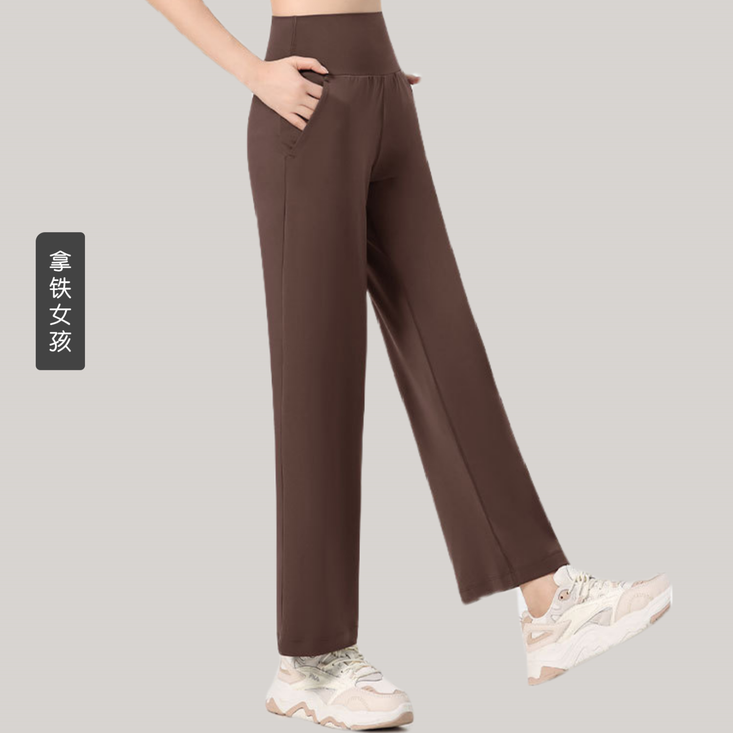 拿铁女孩高腰裸感瑜伽直筒裤长裤小个子显垂坠感直筒透气吸汗长裤