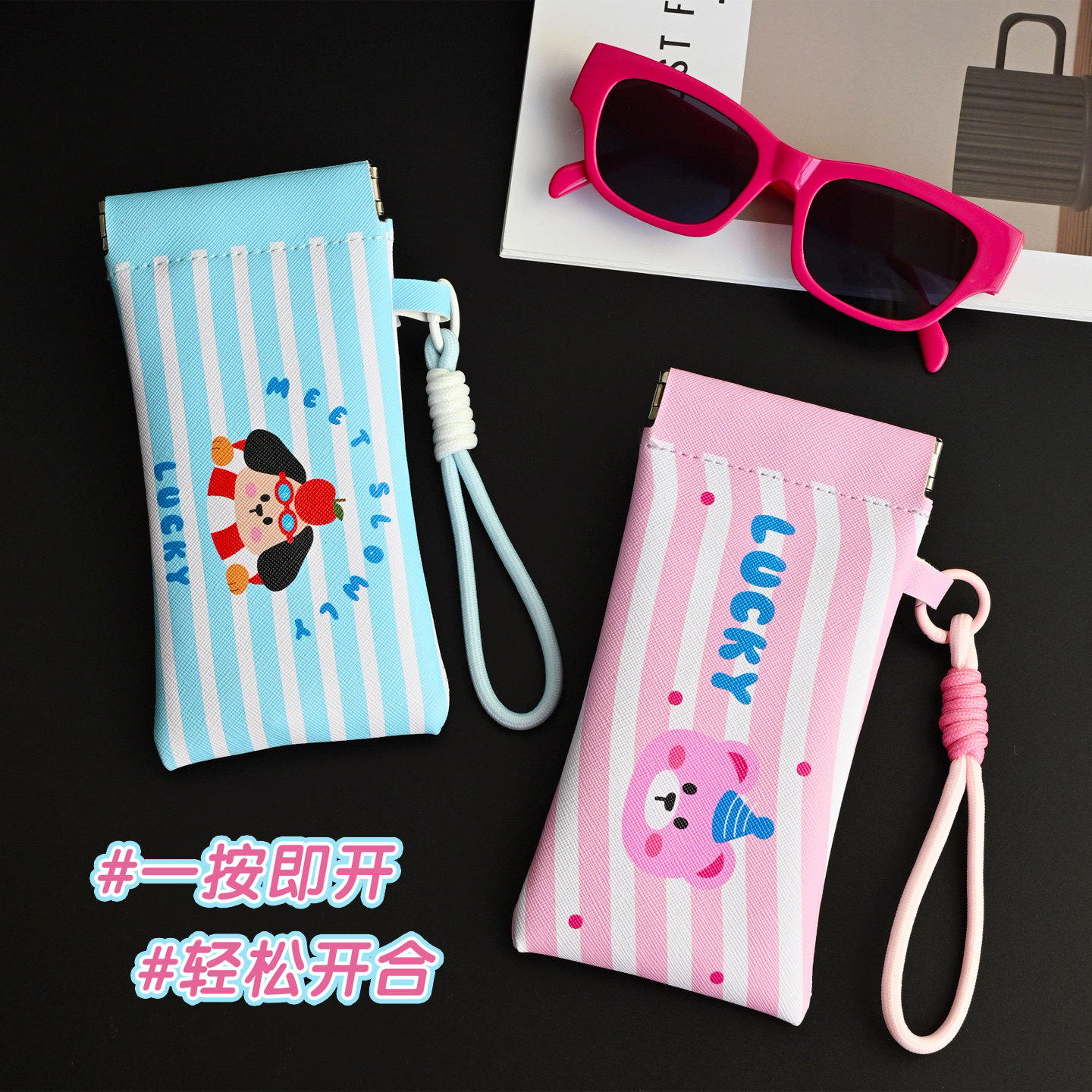 眼镜收纳盒便携式墨镜太阳镜眼镜盒可挂自动闭合学生眼镜袋带挂绳