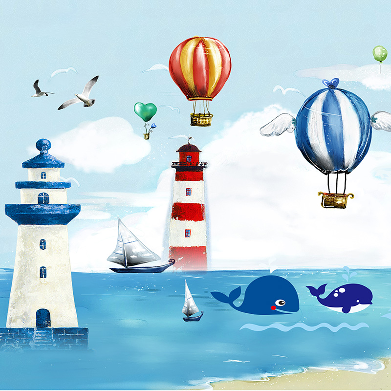 地中海风格自粘墙贴墙纸壁纸蓝色海景壁画客厅儿童房卧室沙发背景