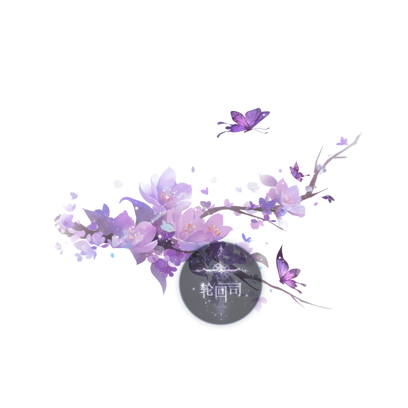仙侠风紫色花枝蝴蝶桃花树枝装饰元素PNG免扣图原创可商设计素材