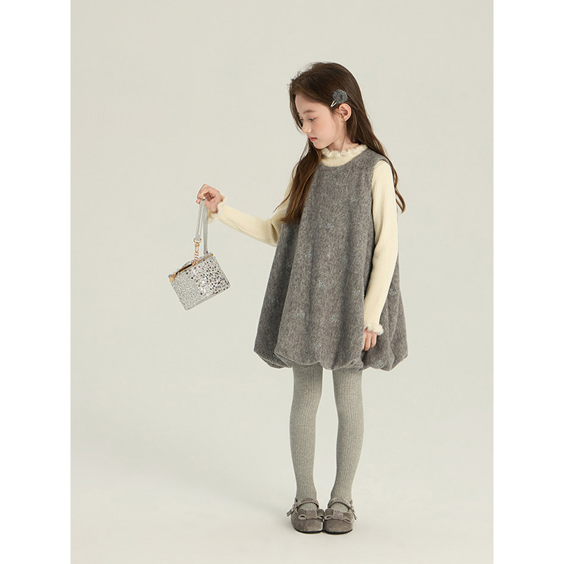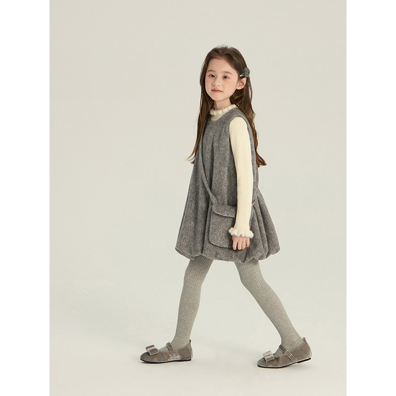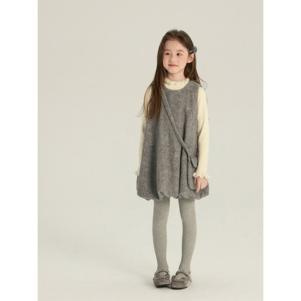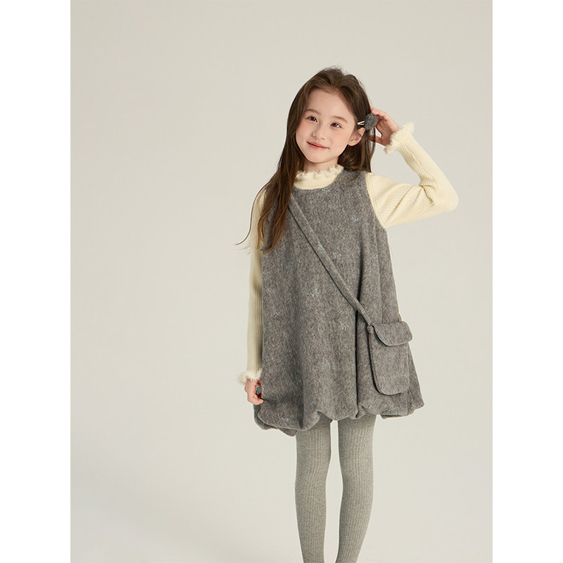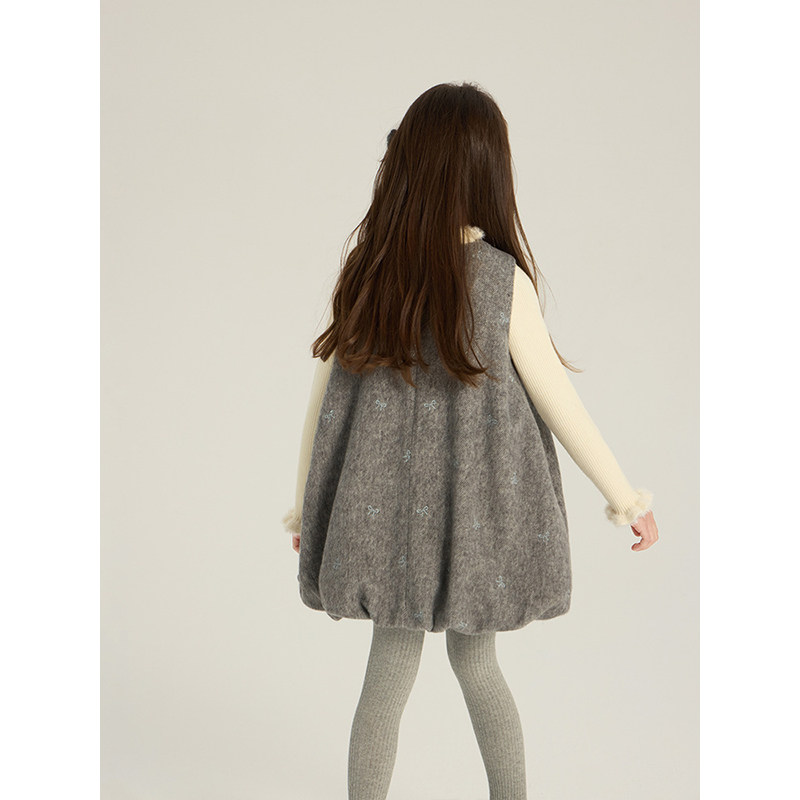 BEIFU贝芙 女童冬季加厚蝴蝶结花边连衣裙儿童韩版百搭呢料背心裙