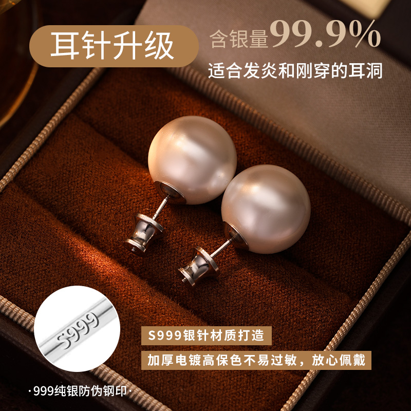 天然深海母贝珍珠耳钉999纯银淡水珍珠耳夹耳饰耳环2025新款爆款
