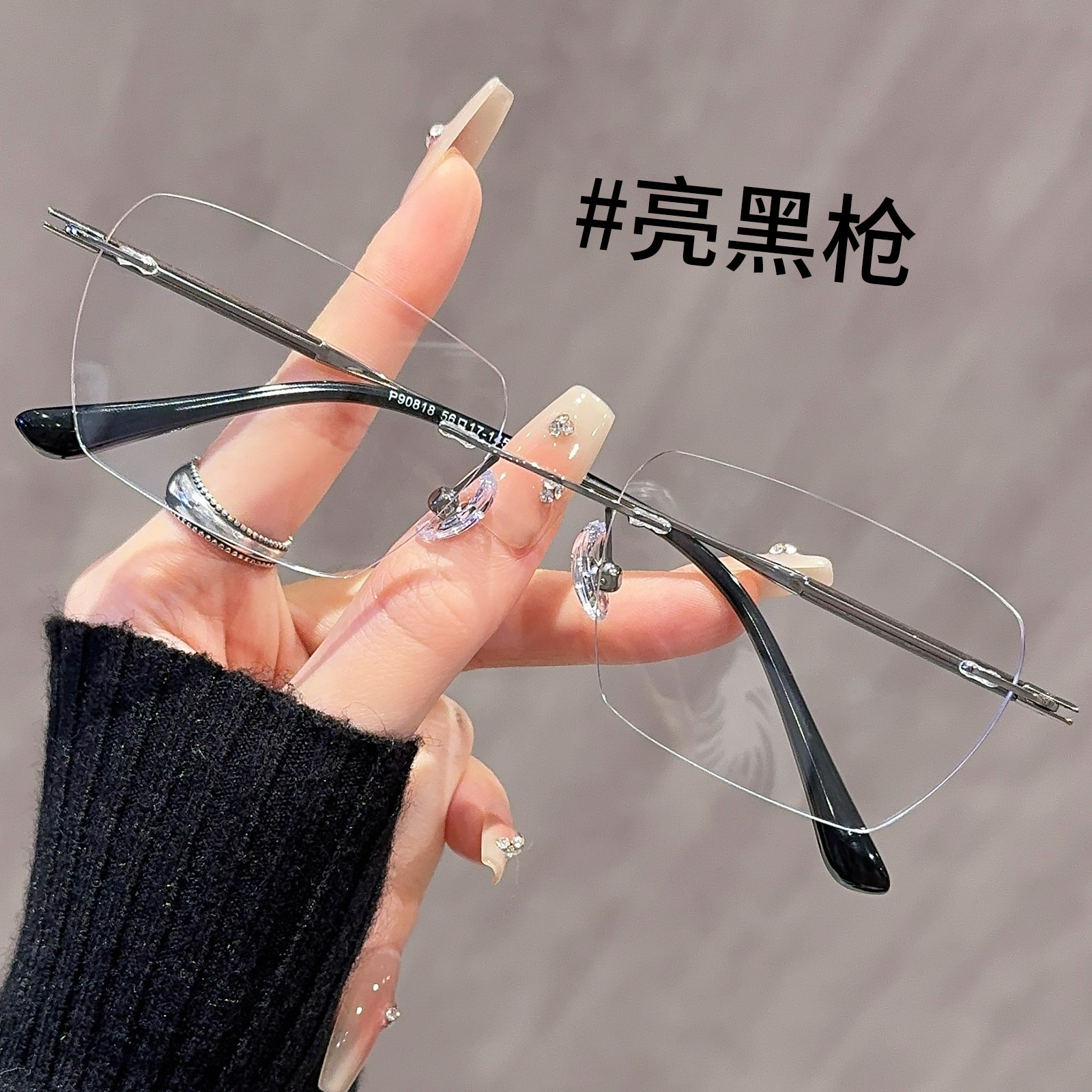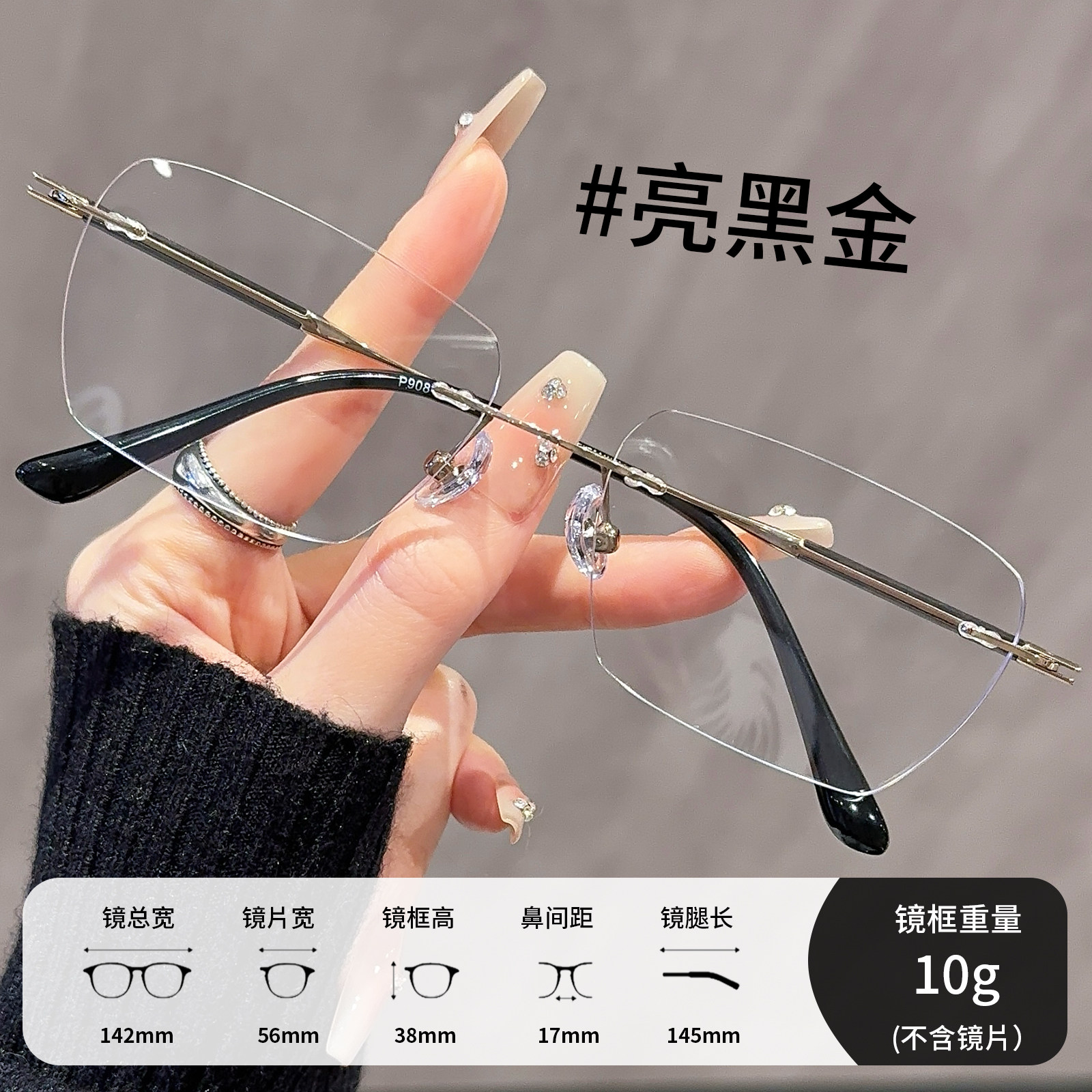纯钛超轻无边框眼镜男近视可配有度数防蓝光商务方框大脸眼睛镜架