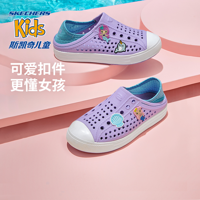Skechers斯凯奇儿童鞋一脚蹬包头凉鞋夏季男女洞洞鞋中大童沙滩鞋