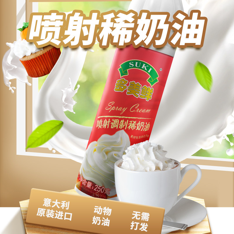 多美鲜喷射奶油喷罐250g意大利进口即喷即食动物奶油烘焙蛋糕雪顶