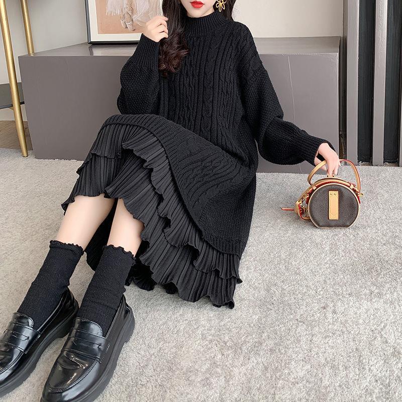 过膝连衣裙女宽松外穿2025年秋冬新款女士毛衣加厚慵懒风裙子