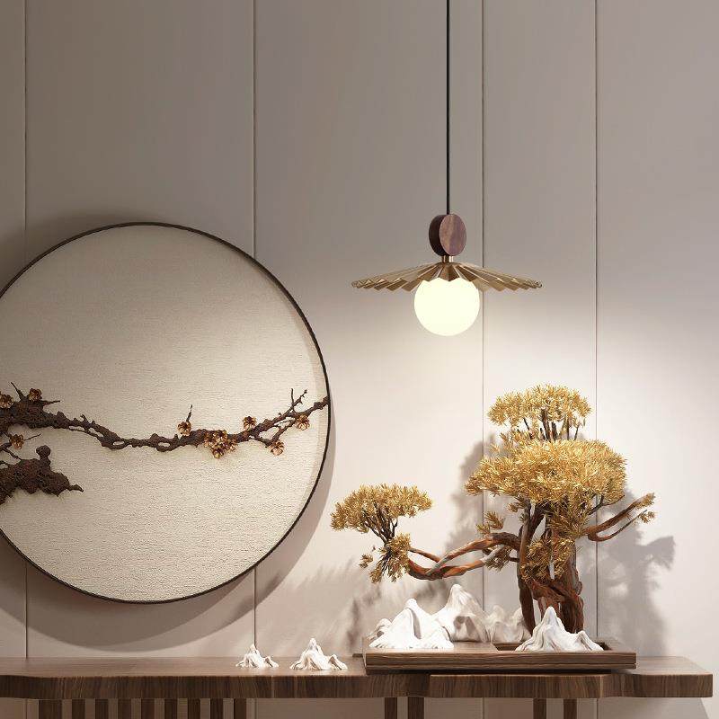 餐厅吊灯新中式胡桃木全铜三头饭厅吧台灯具极简轻奢卧室床头吊灯