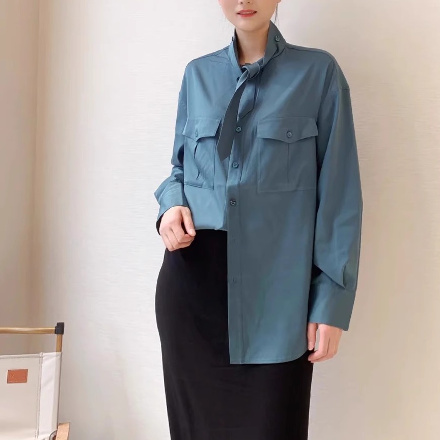 阿玛施正品同款2025新款宽松口袋桑蚕丝系带长袖衬衫女装5300799