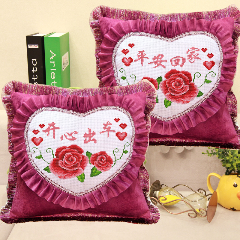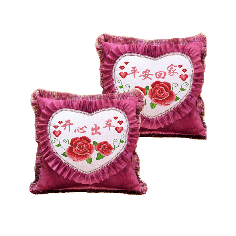 开心出车平安回家新款印好花十字绣抱枕送礼绒布汽车沙发靠背枕套