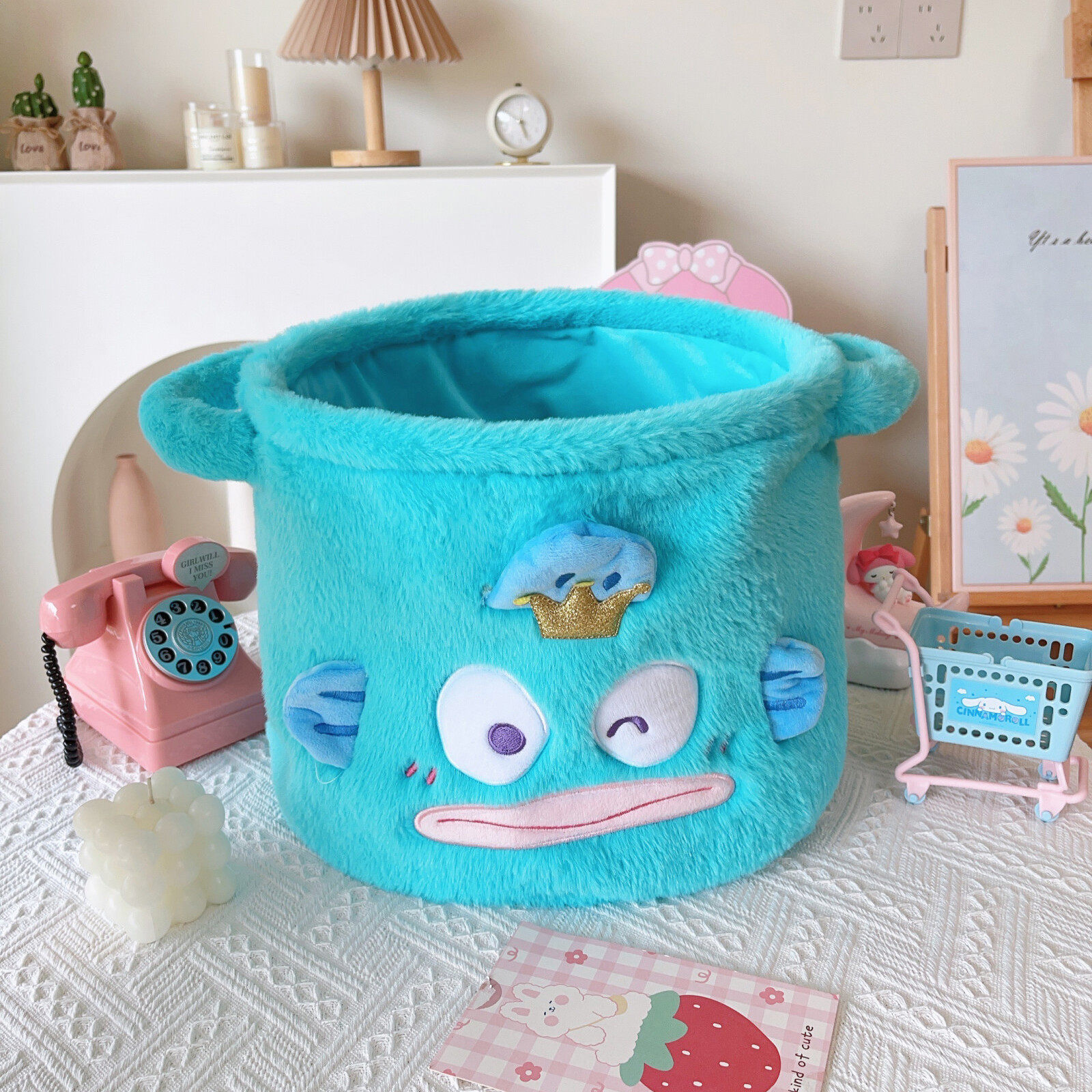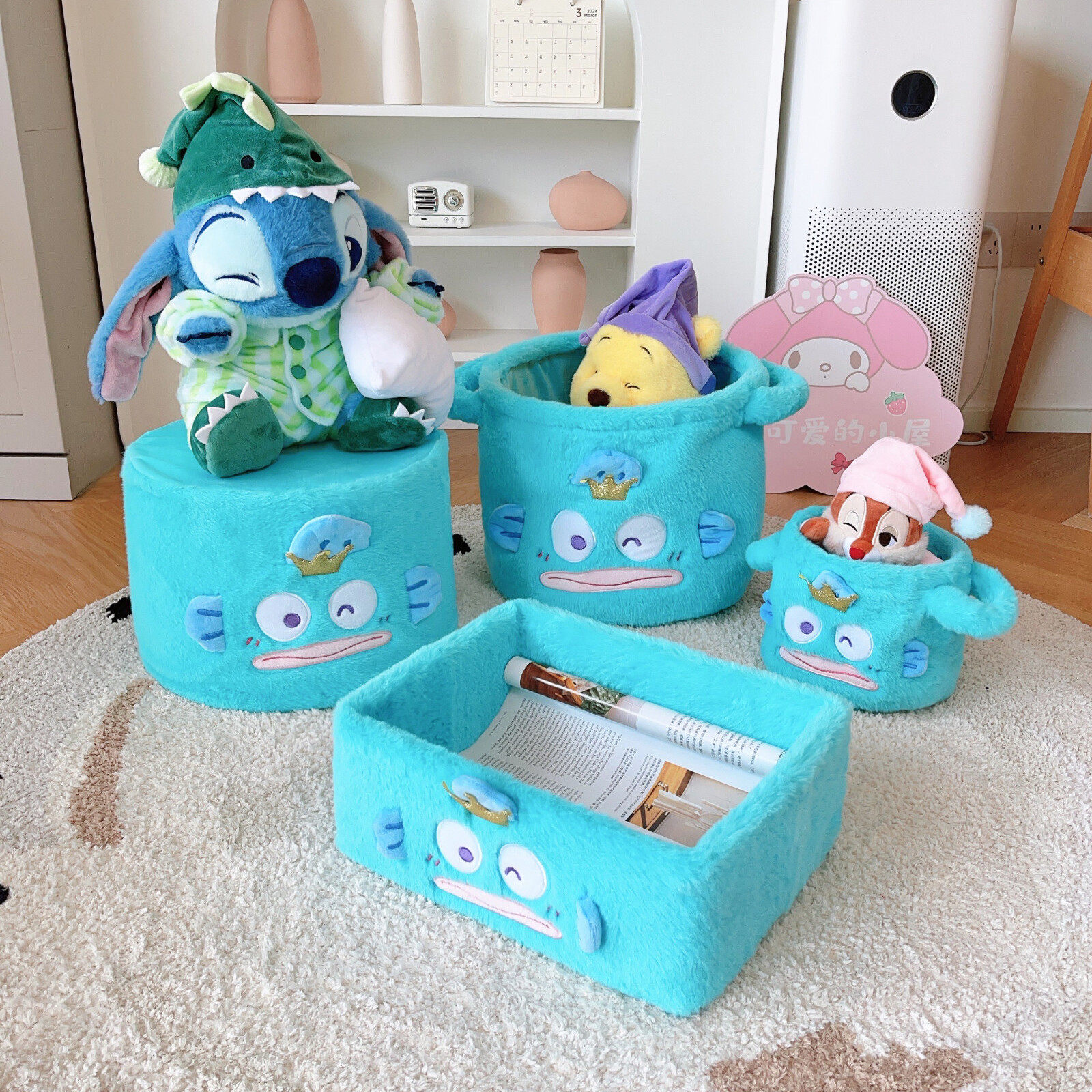 日系卡通丑鱼小怪兽人鱼汉顿周边收纳桶置物盒午睡枕零钱包首饰盒