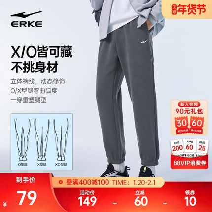 鸿星尔克裤子男秋季新款男士灰色针织运动裤男生休闲长裤透气卫裤