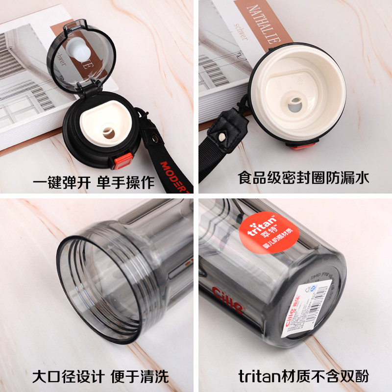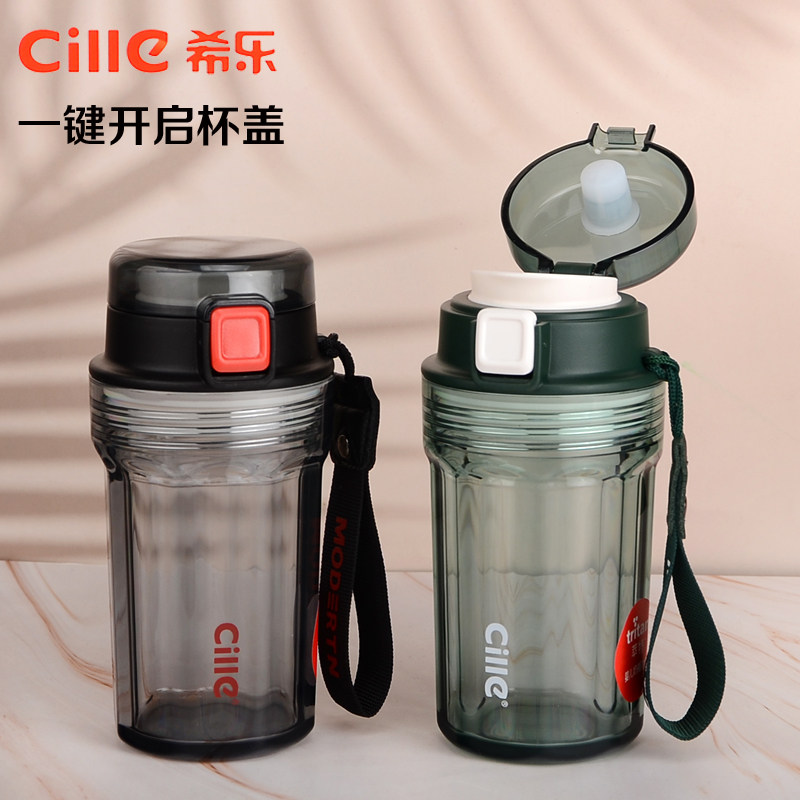 希乐咖啡杯tritan塑料男女高颜值便携随手杯大容量学生简约杯子