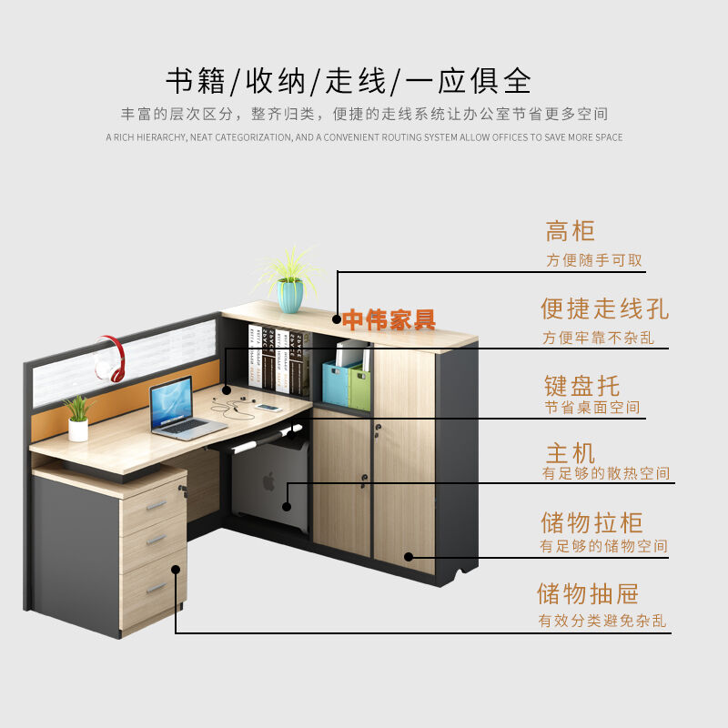中伟屏风办公桌椅组合职员工位现代简约隔断卡座财务桌电脑桌单人