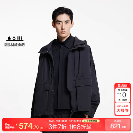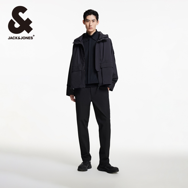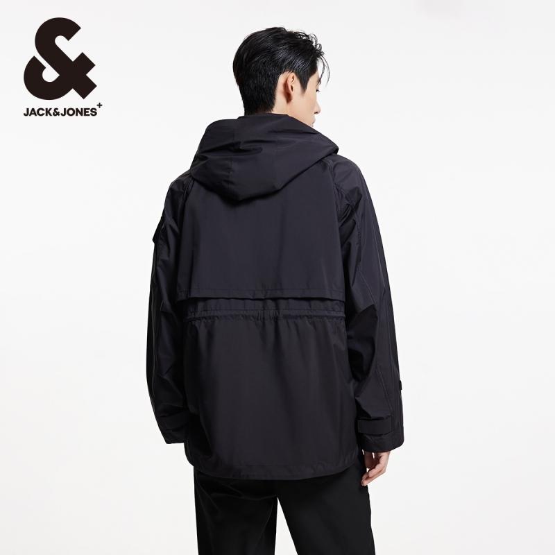 jq区绫致杰克琼斯春夏简约时尚百搭舒适宽松黑色连帽夹克外套男