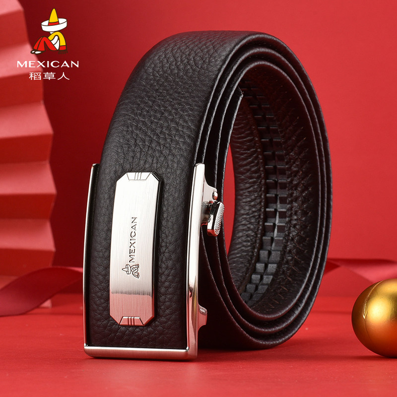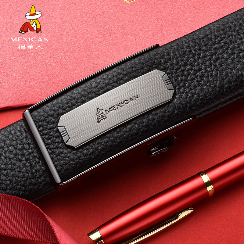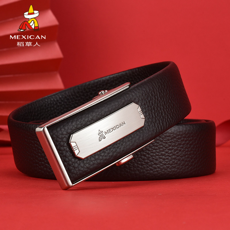 稻草人男士皮带头层牛皮内穿自动扣商务休闲大气时尚腰带裤带