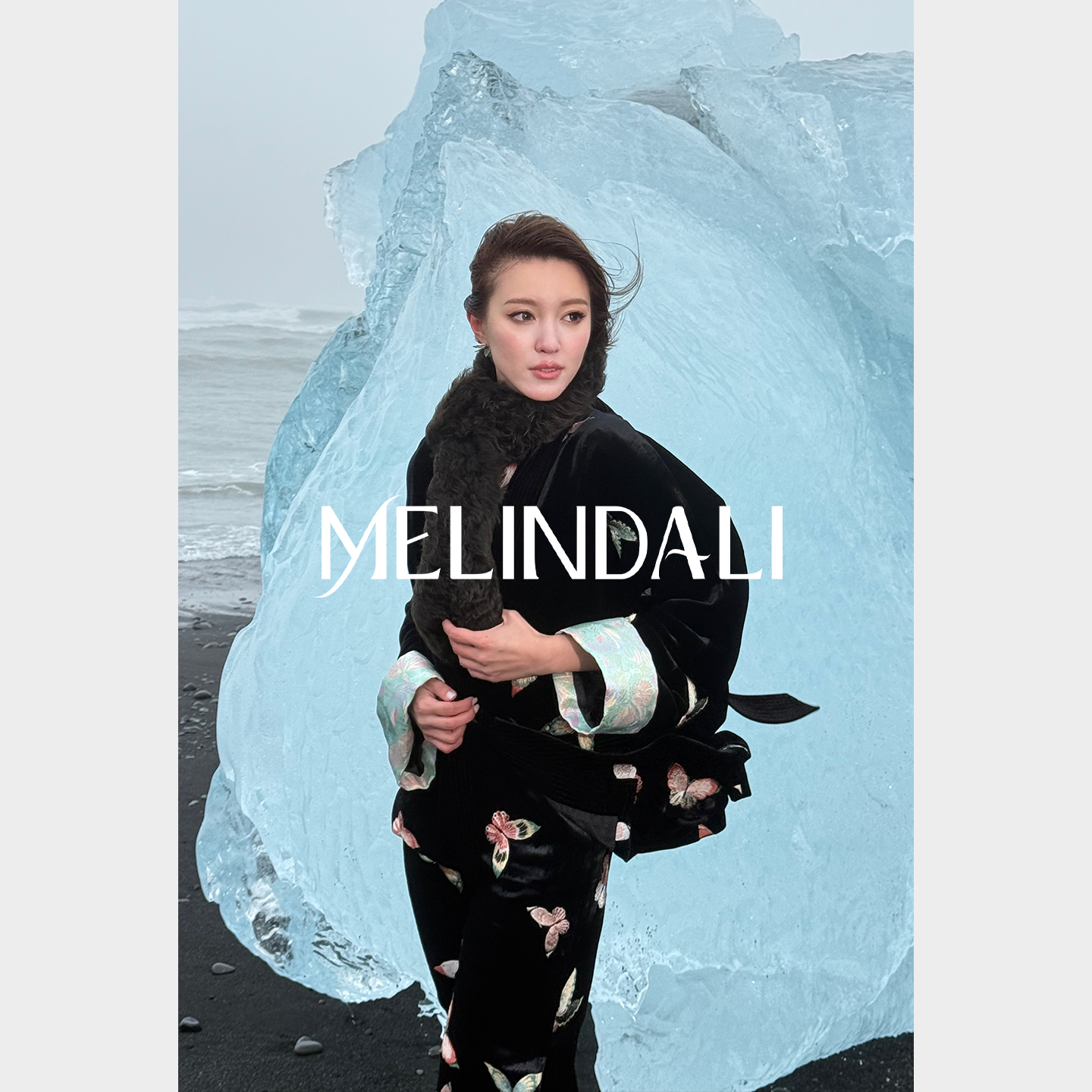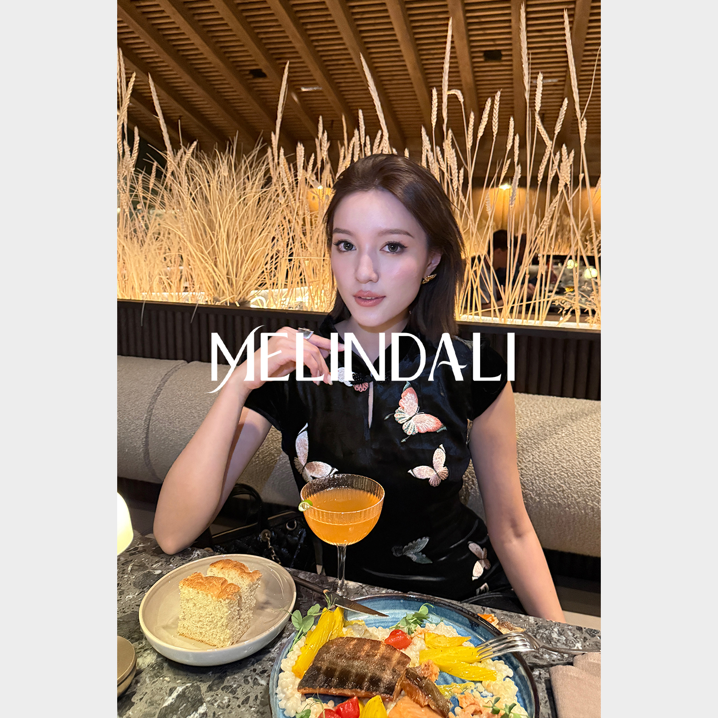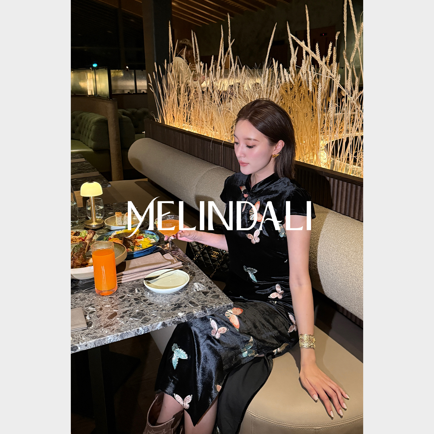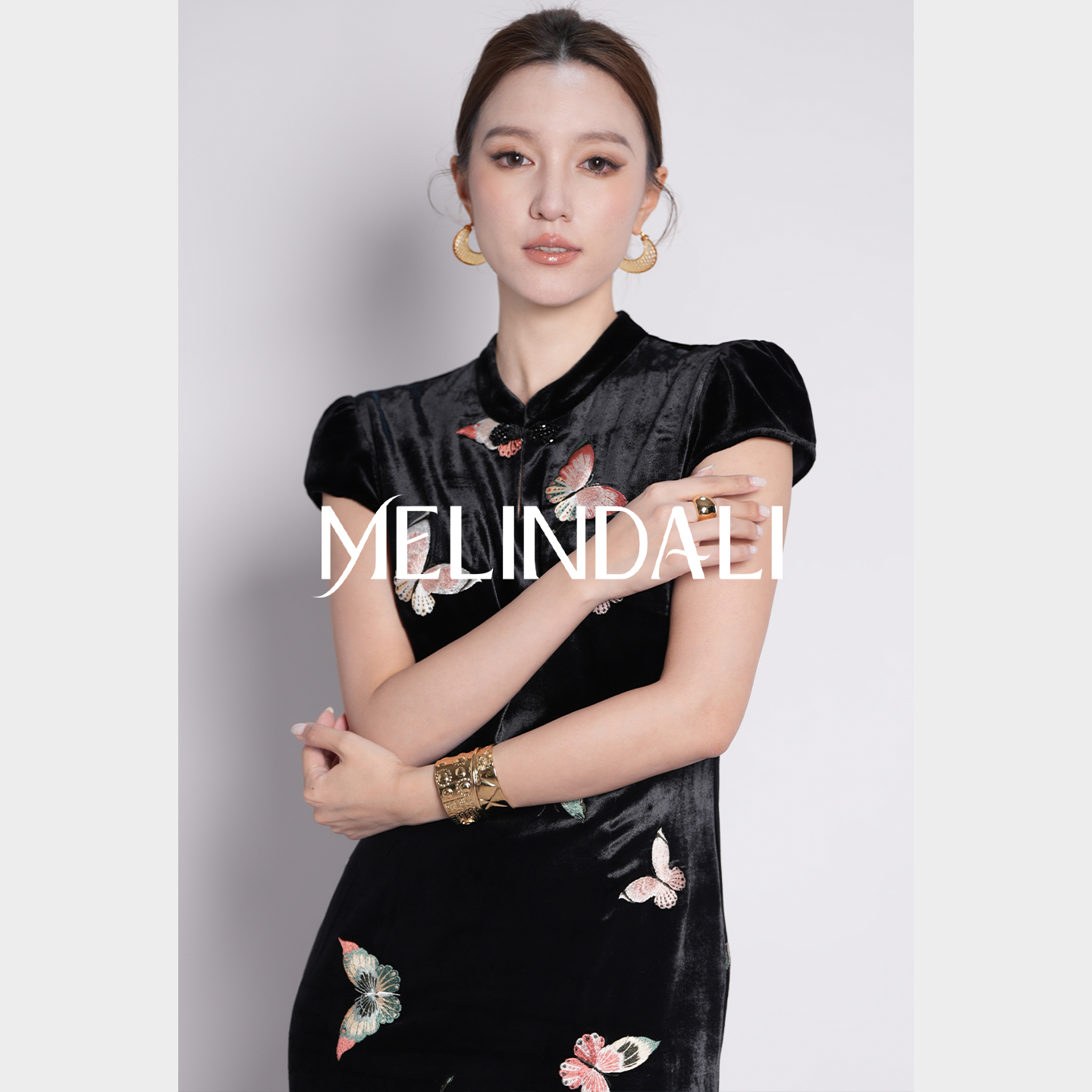 MELINDA LI【浪漫入骨】新中式桑蚕丝丝绒斜裁蝴蝶绣旗袍裙子外套