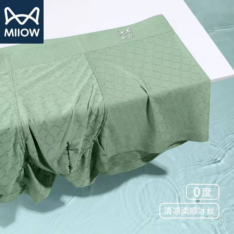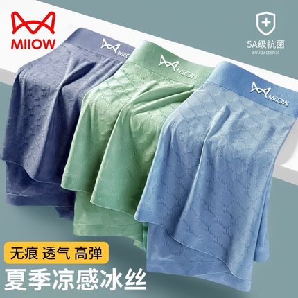 猫人男士内裤冰丝无痕凉感抗菌男生夏季超薄款透气平角四角裤头