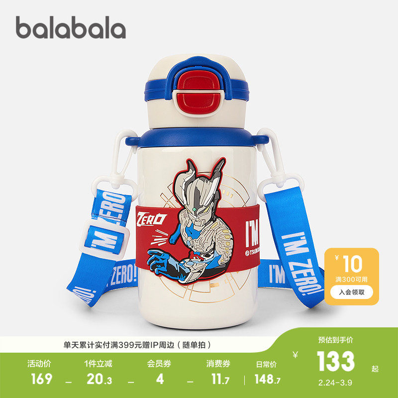 【奥特曼IP商场同款】巴拉巴拉儿童保温杯男童吸管直饮口水杯潮酷