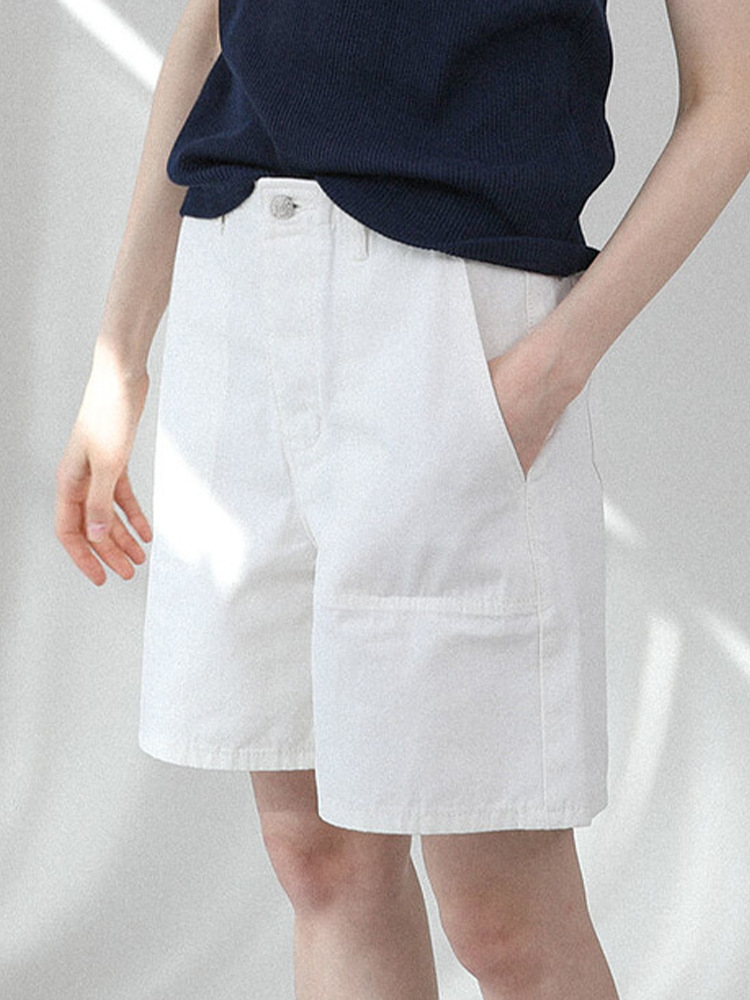 日系宽松直筒裤中裤女夏季薄款白色五分裤子休闲运动高腰短裤