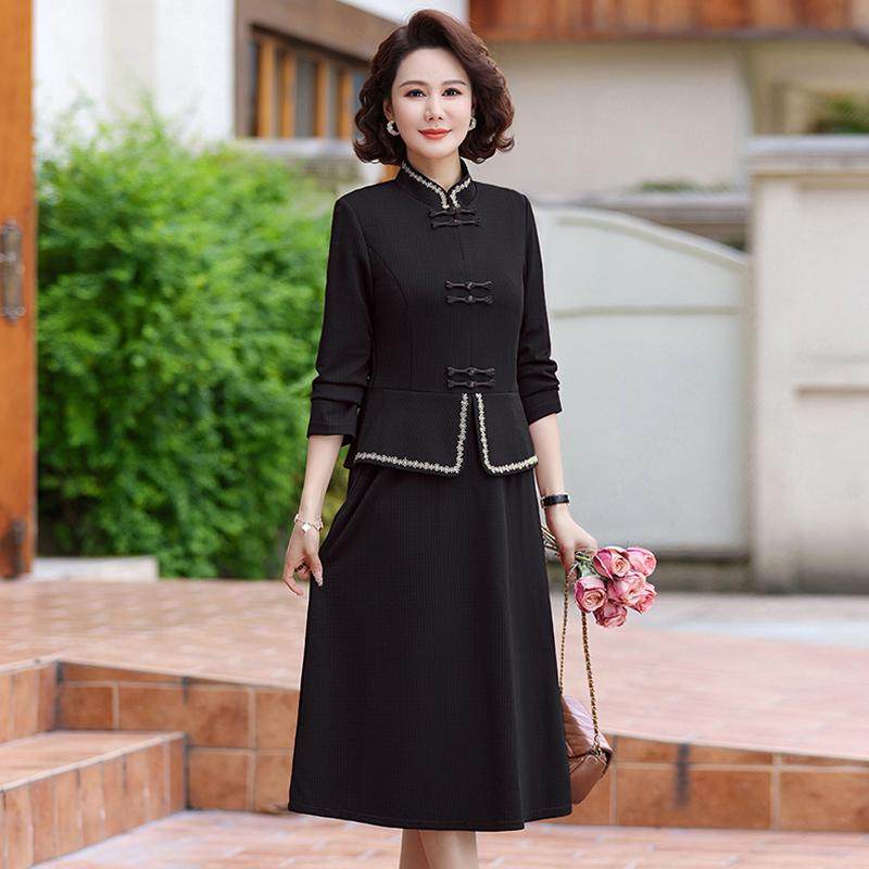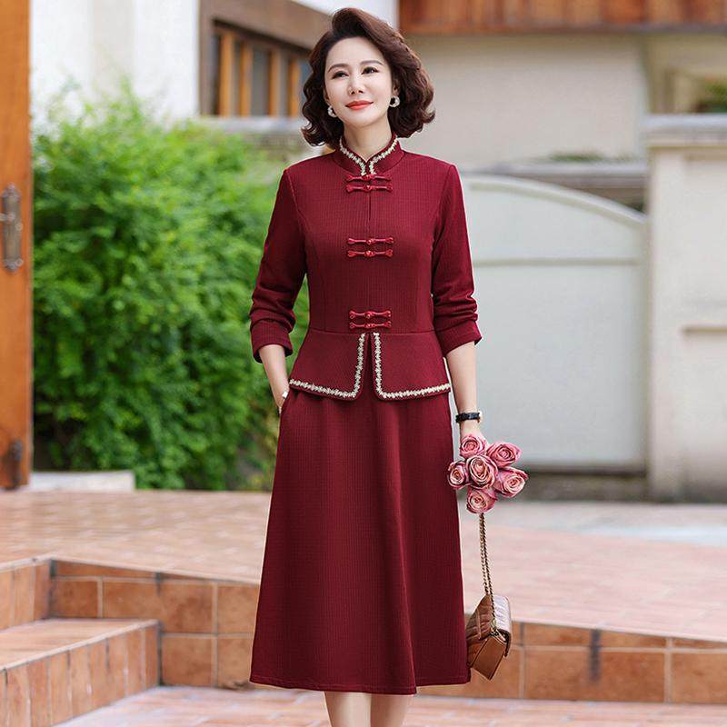 妈妈装春秋时尚国风长袖旗袍套装