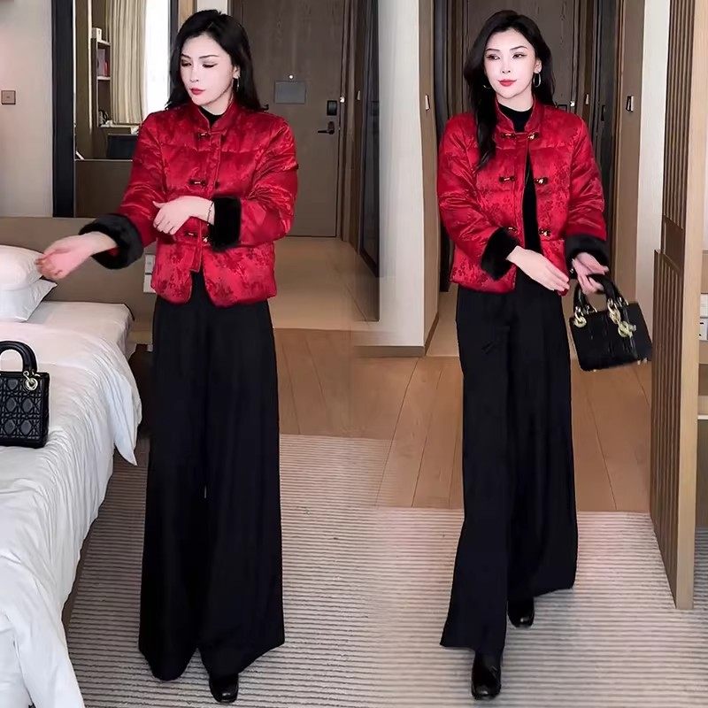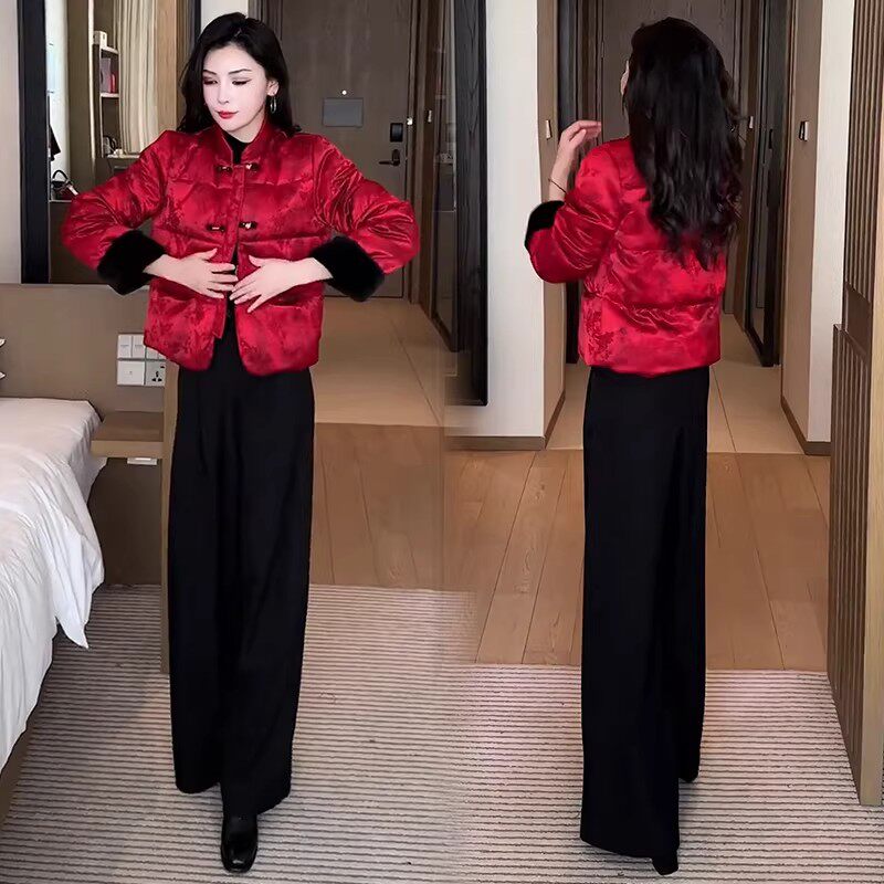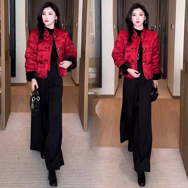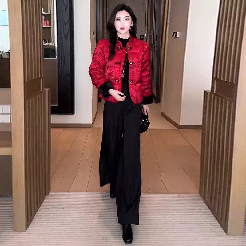 新中式国风红色棉服女士冬季2025新款棉袄子盘扣加厚保暖棉衣外套