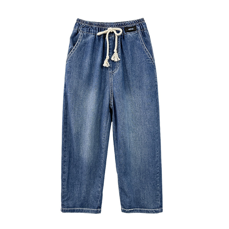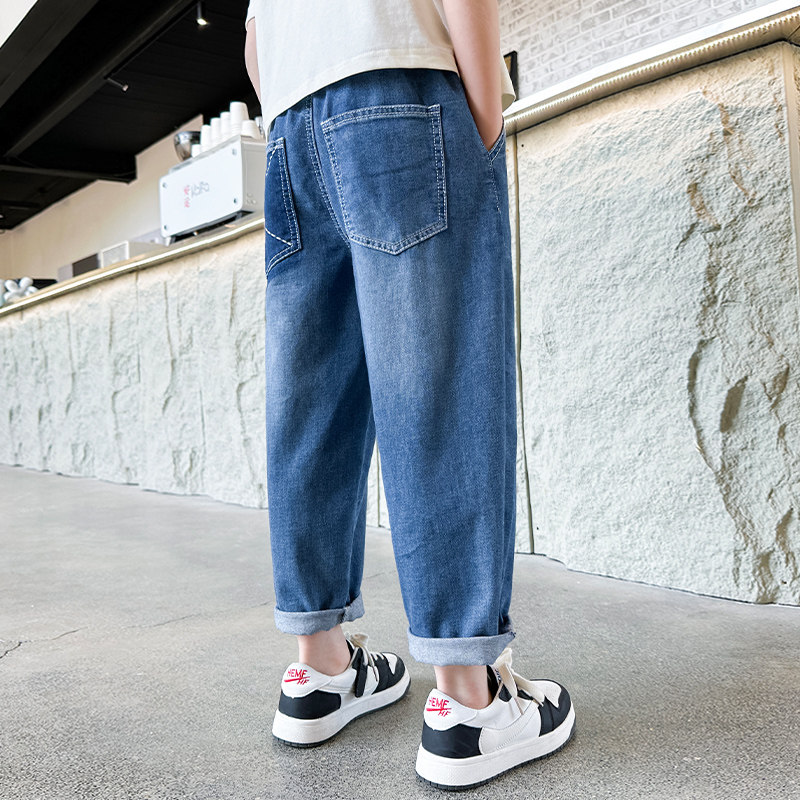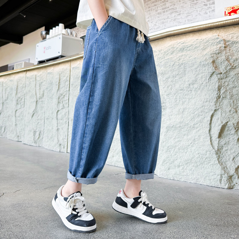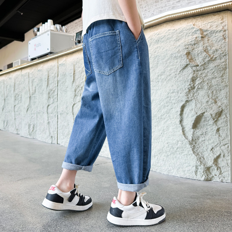男童裤子夏季薄款2023新款儿童中大童防蚊宽松男孩直筒九分牛仔裤