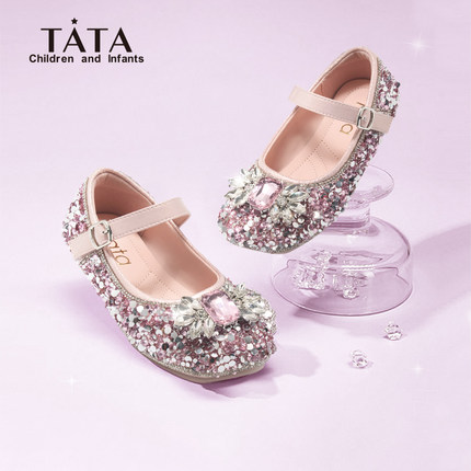 他她童鞋儿童水晶鞋2025新款秋季女童粉色玛丽珍鞋女孩软底公主鞋