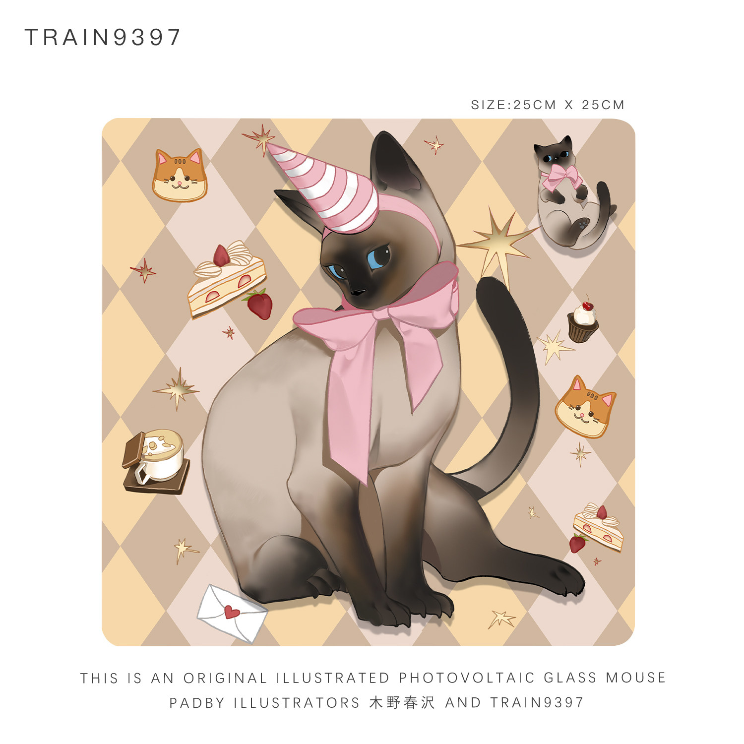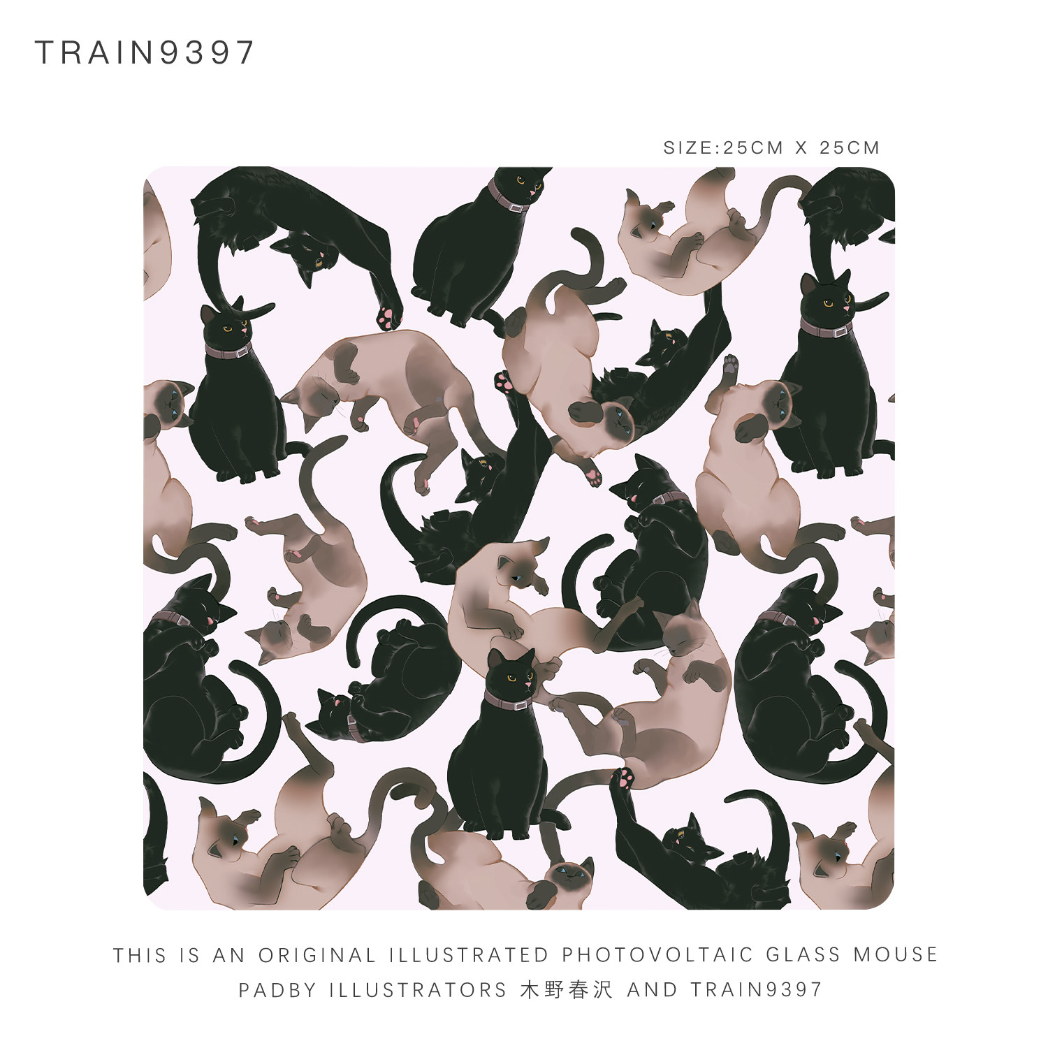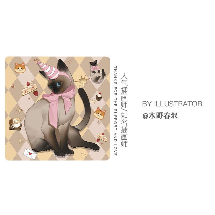 9397猫咪系列自创原创插画光伏玻璃鼠标垫25x25cm游戏电竞用