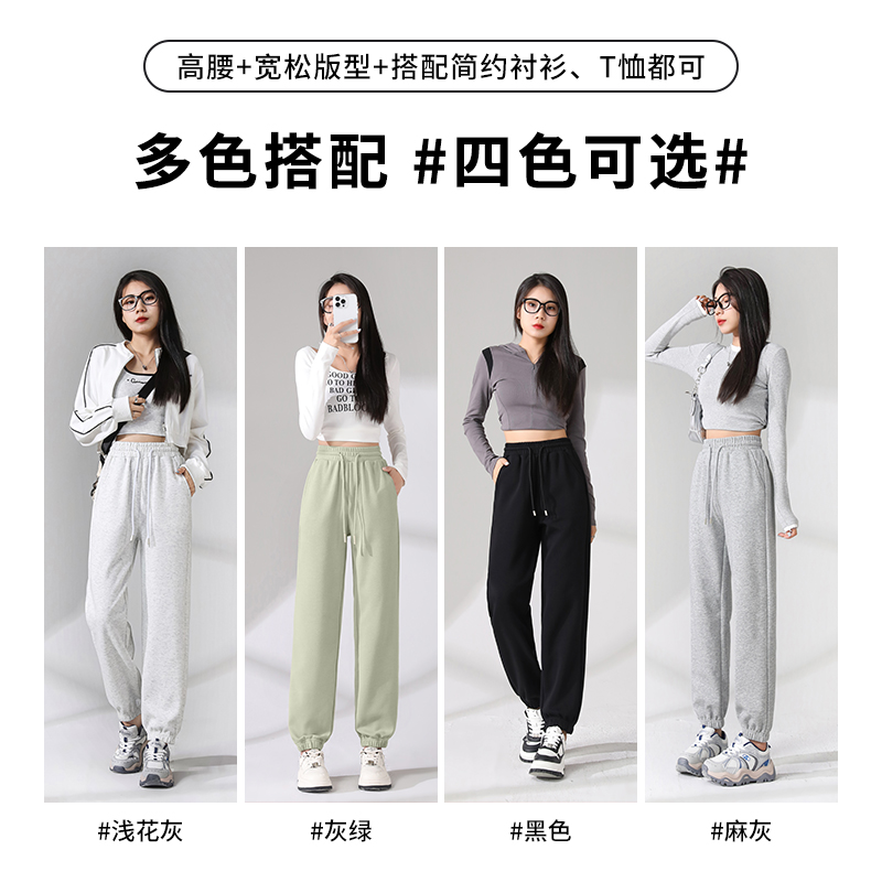 回力灰色休闲束脚运动裤女春秋2025新款宽松直筒高腰显瘦学生卫裤