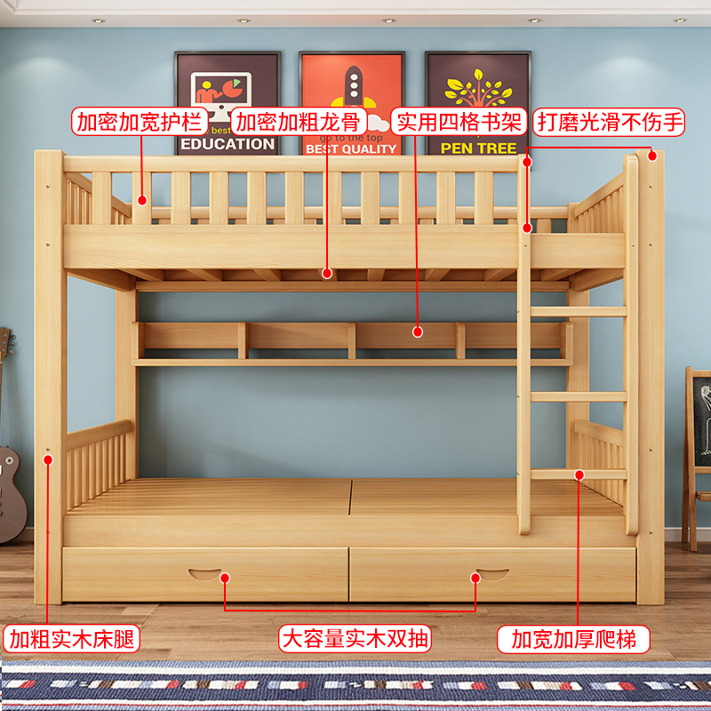 上下铺双层床全实木高低床儿童床上下床子母床省空间两层大人木床