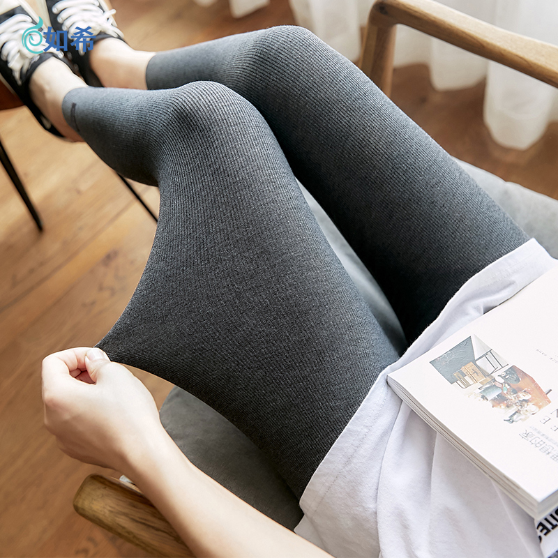 莫代尔夏季灰色紧身九分打底裤女