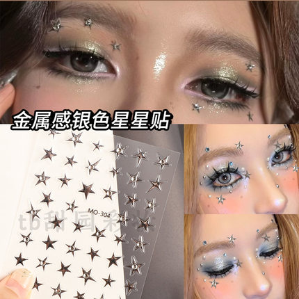 星星贴纸金属感银色带钻五角星面贴亚比妆面部贴纸星芒音乐节妆容