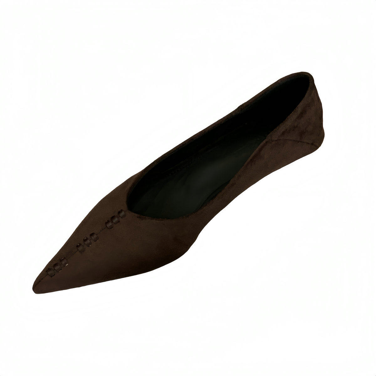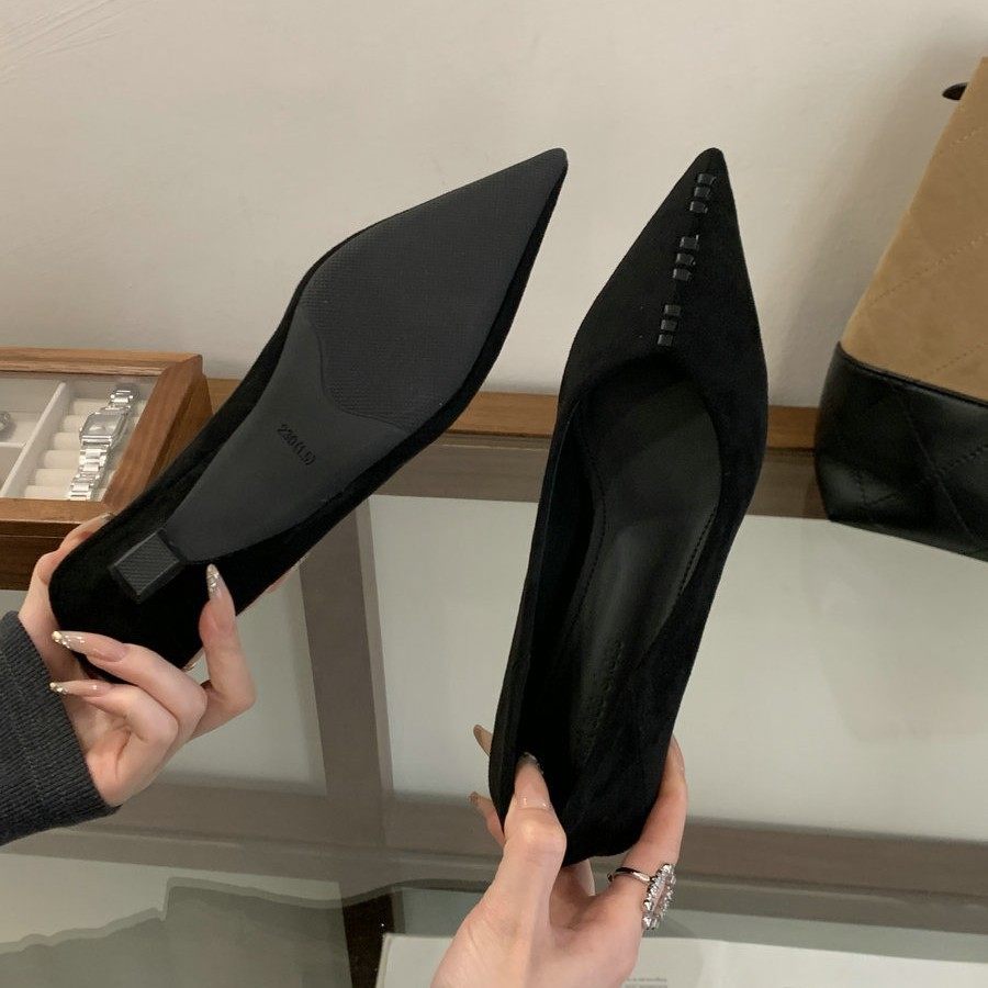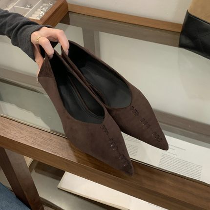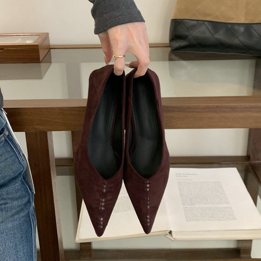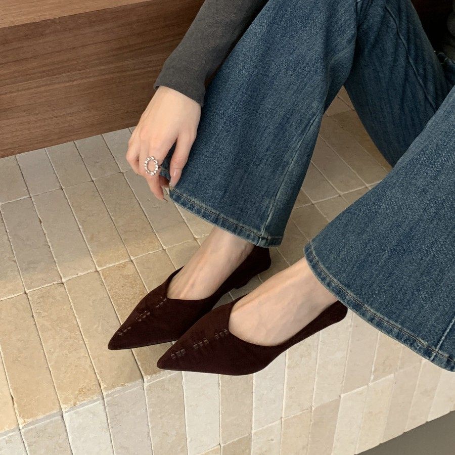 2025秋季新款绒面尖头浅口低跟一脚蹬复古气质小猫跟通勤单鞋女
