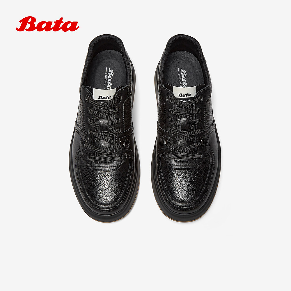 Bata休闲鞋男2025冬季商场新款时尚牛皮厚底休闲百搭板鞋FND03DM5