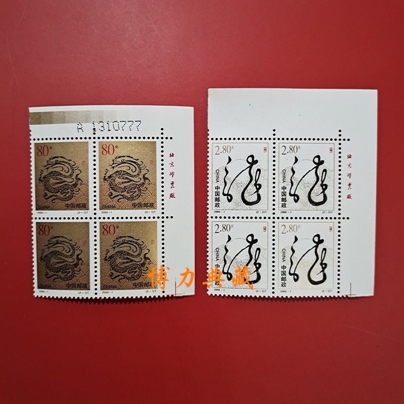 2000年龙年邮票四方连 带厂名 套票 第二轮生肖龙 原胶 金粉亮