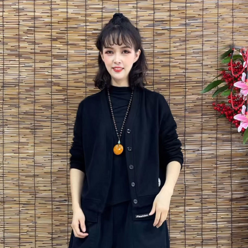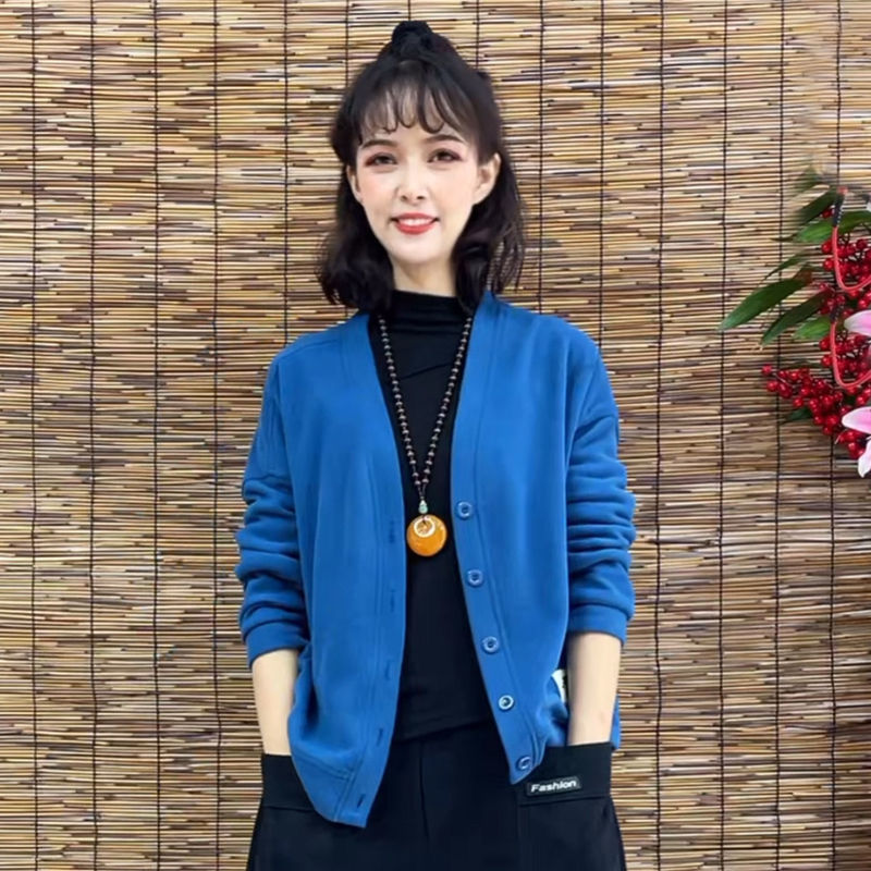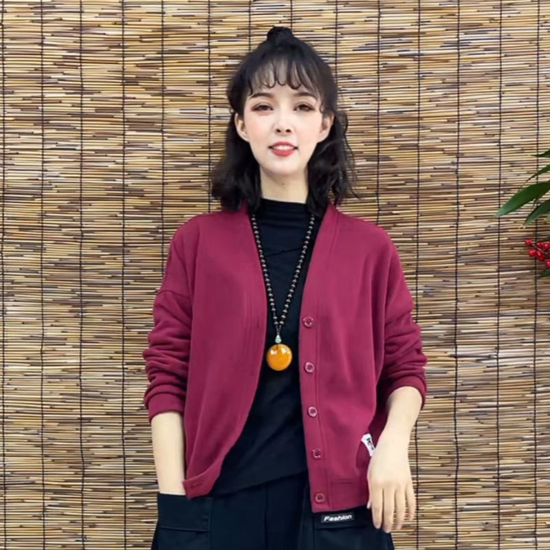 薄款宽松针织棉复古开衫卫衣外套