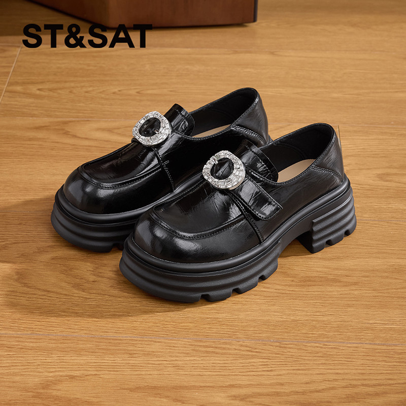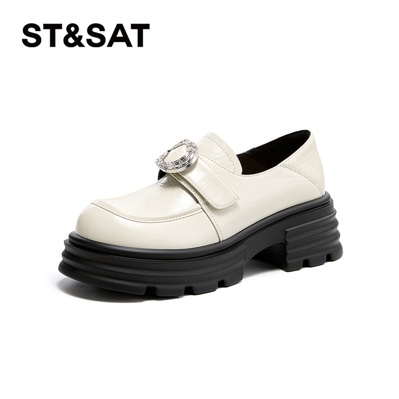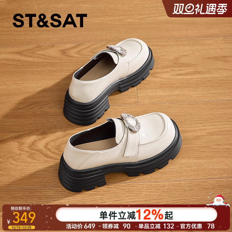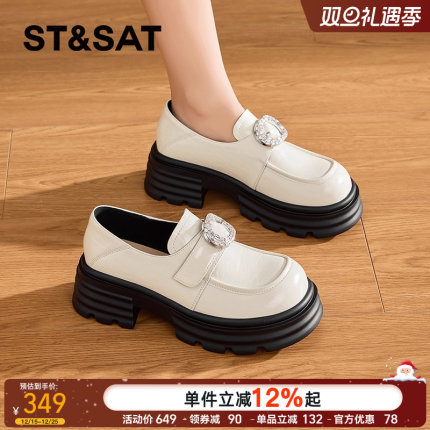 星期六白色厚底增高乐福鞋女2025秋季新款小皮鞋粗跟单鞋百搭女鞋