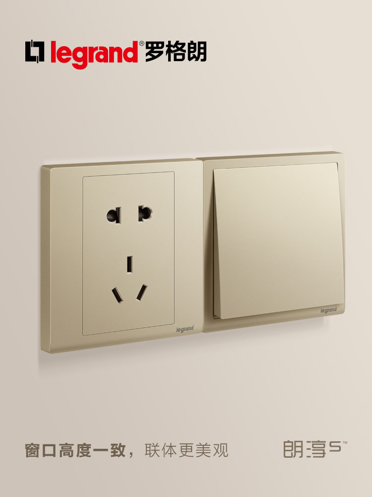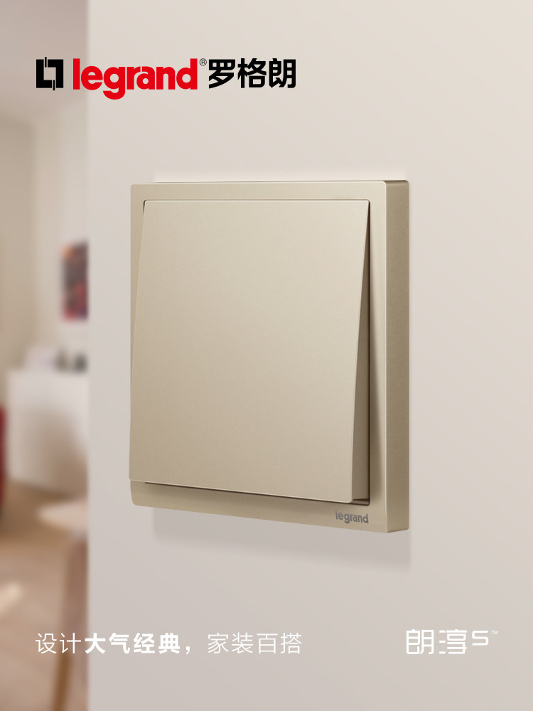 罗格朗开关插座面板家用86型USB五孔朗淳S米兰金色墙壁二三插多孔