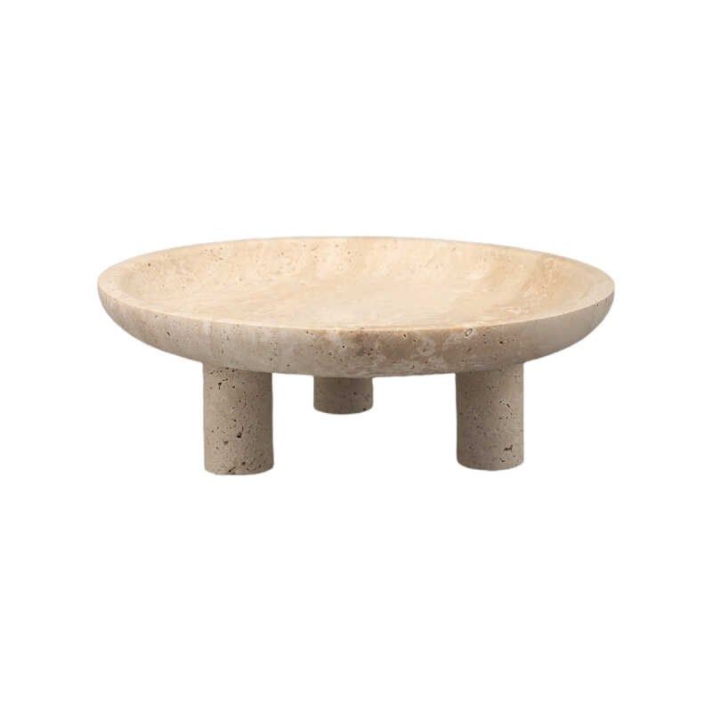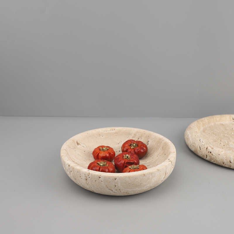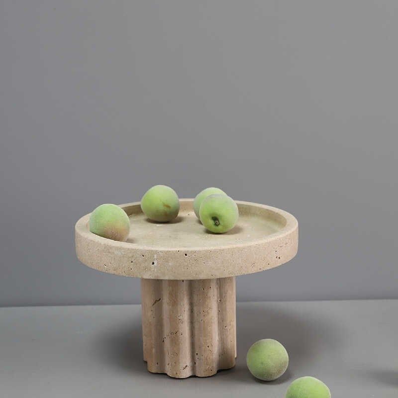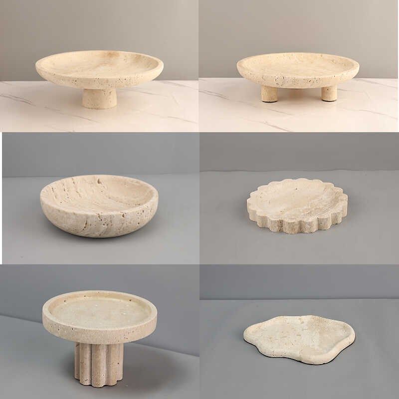 法式侘寂风大f理石托盘高脚果盘黄洞石装饰盘软装会所台面家居摆