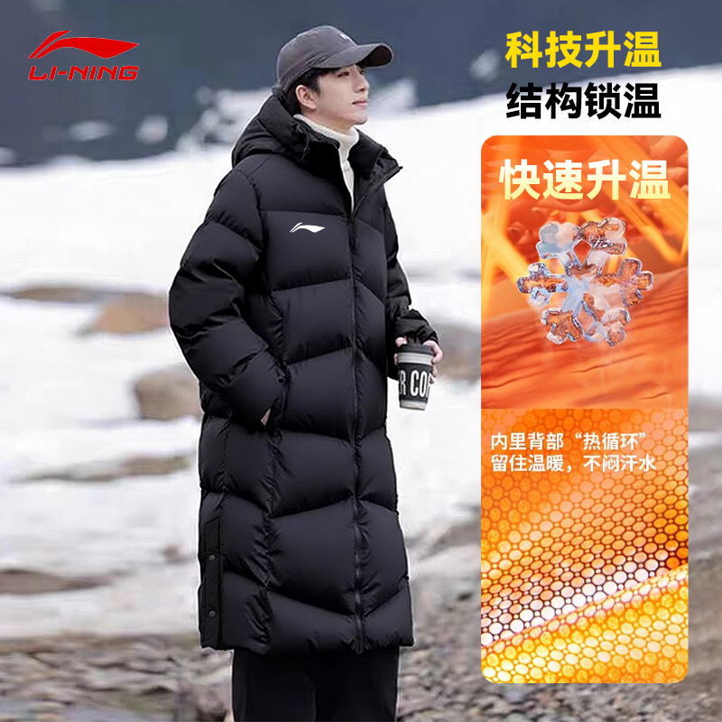 李宁棉服男2025冬款绒过膝御寒科技保暖防风加厚连帽长款外套